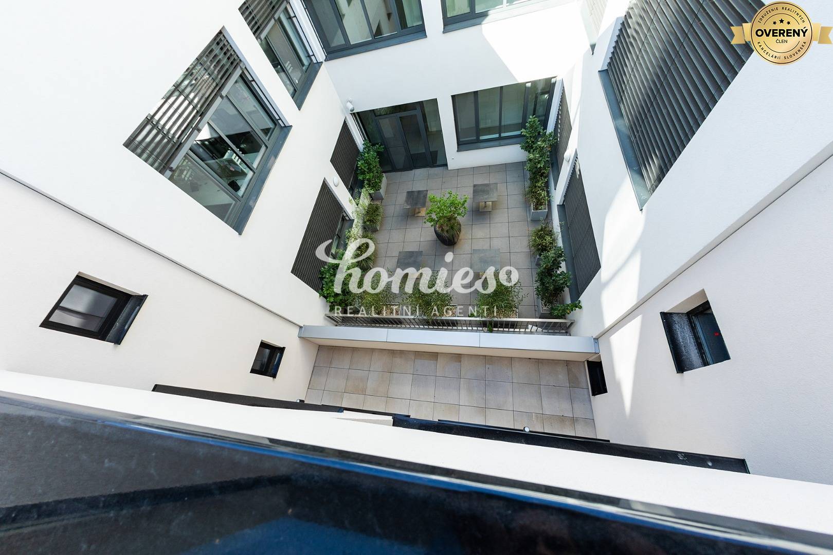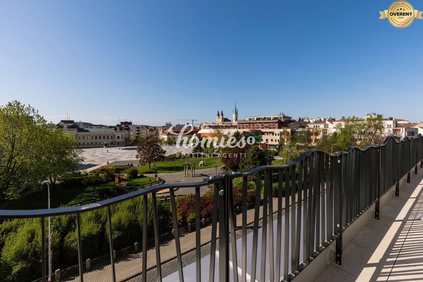 3. poschodie, veľká terasa s výhľadom na Svätoplukovo námestie