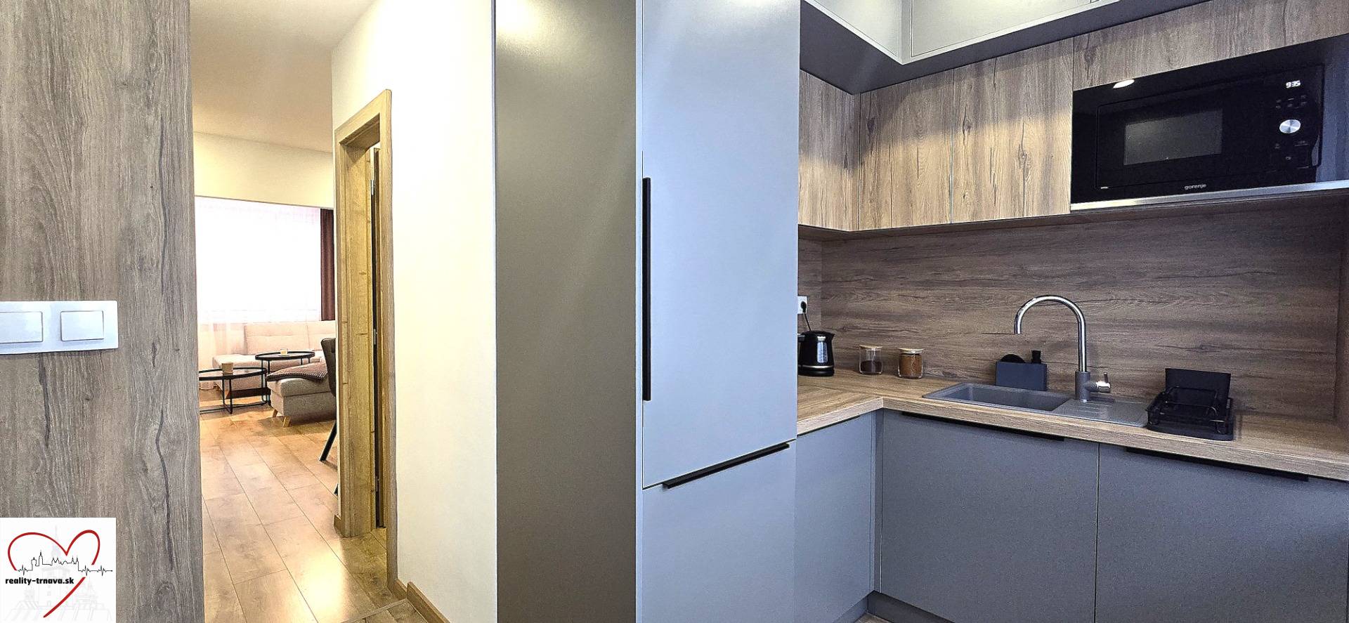 • vstavané spotrebiče Gorenje (chladnička s mrazničkou, plynový sporák, elektrická rúra, umývačka riadu, mikrovlnka)