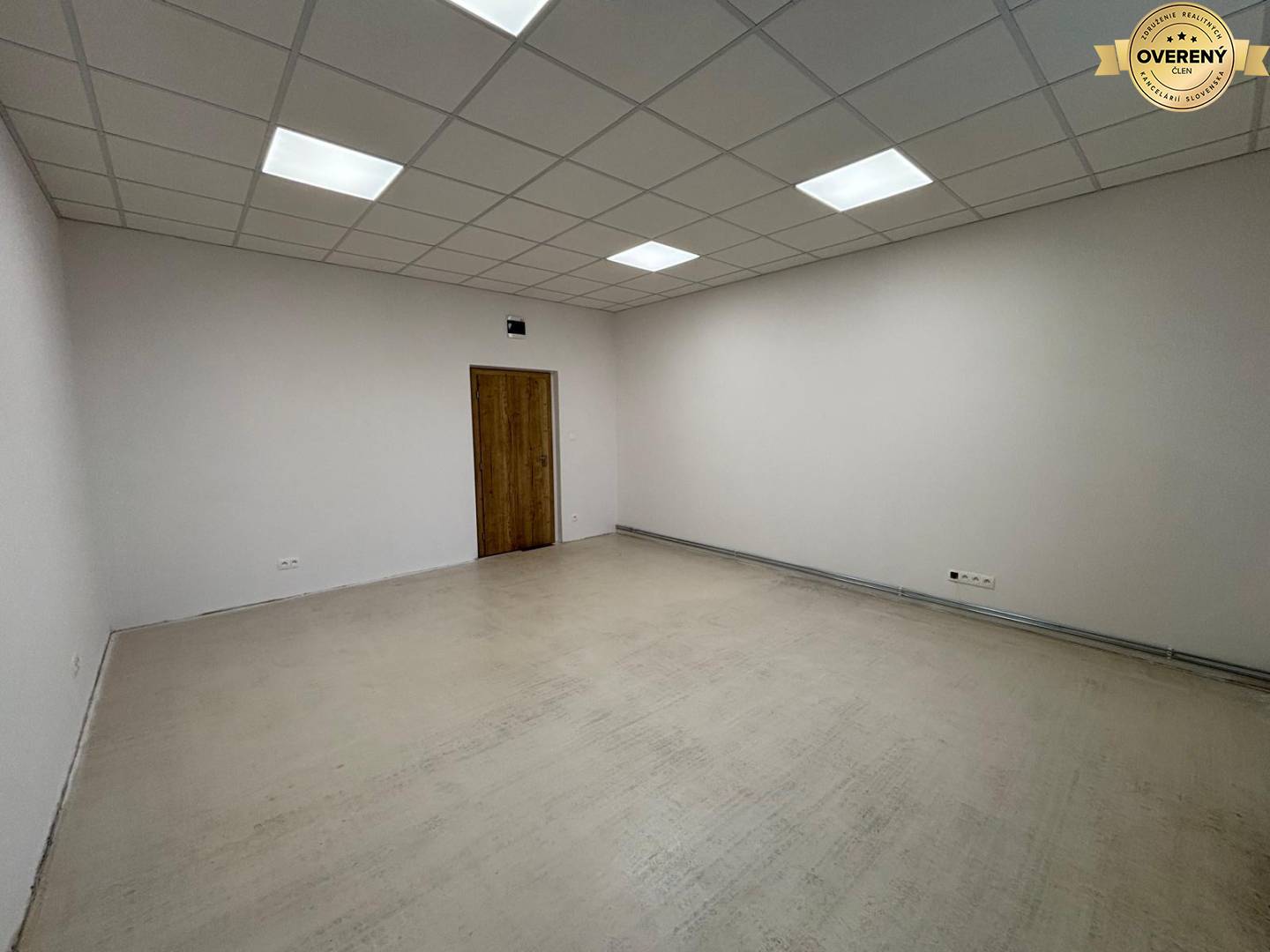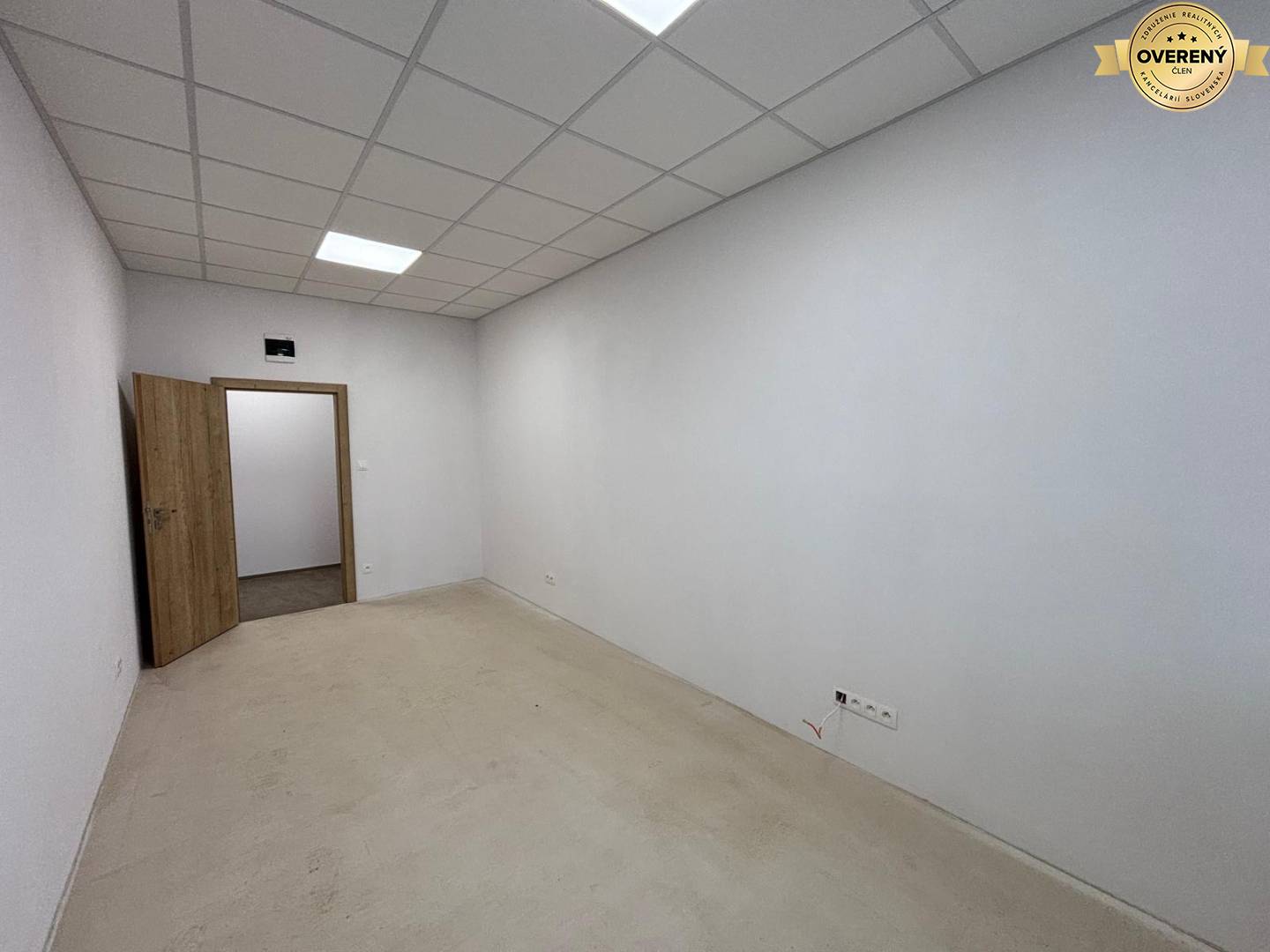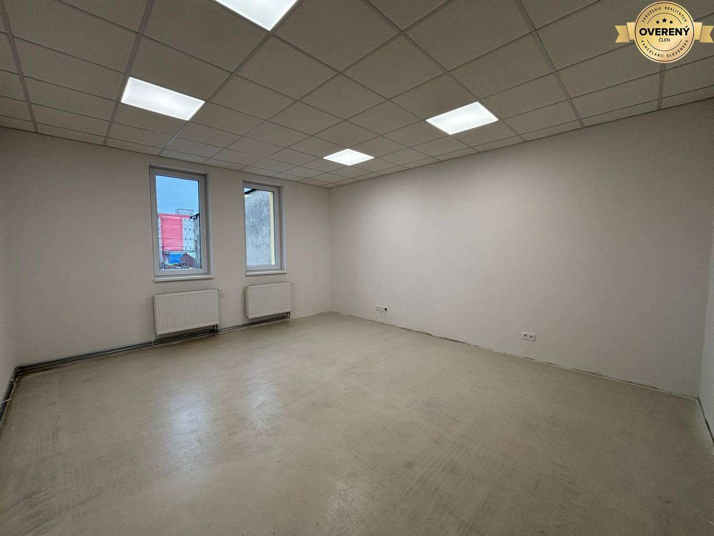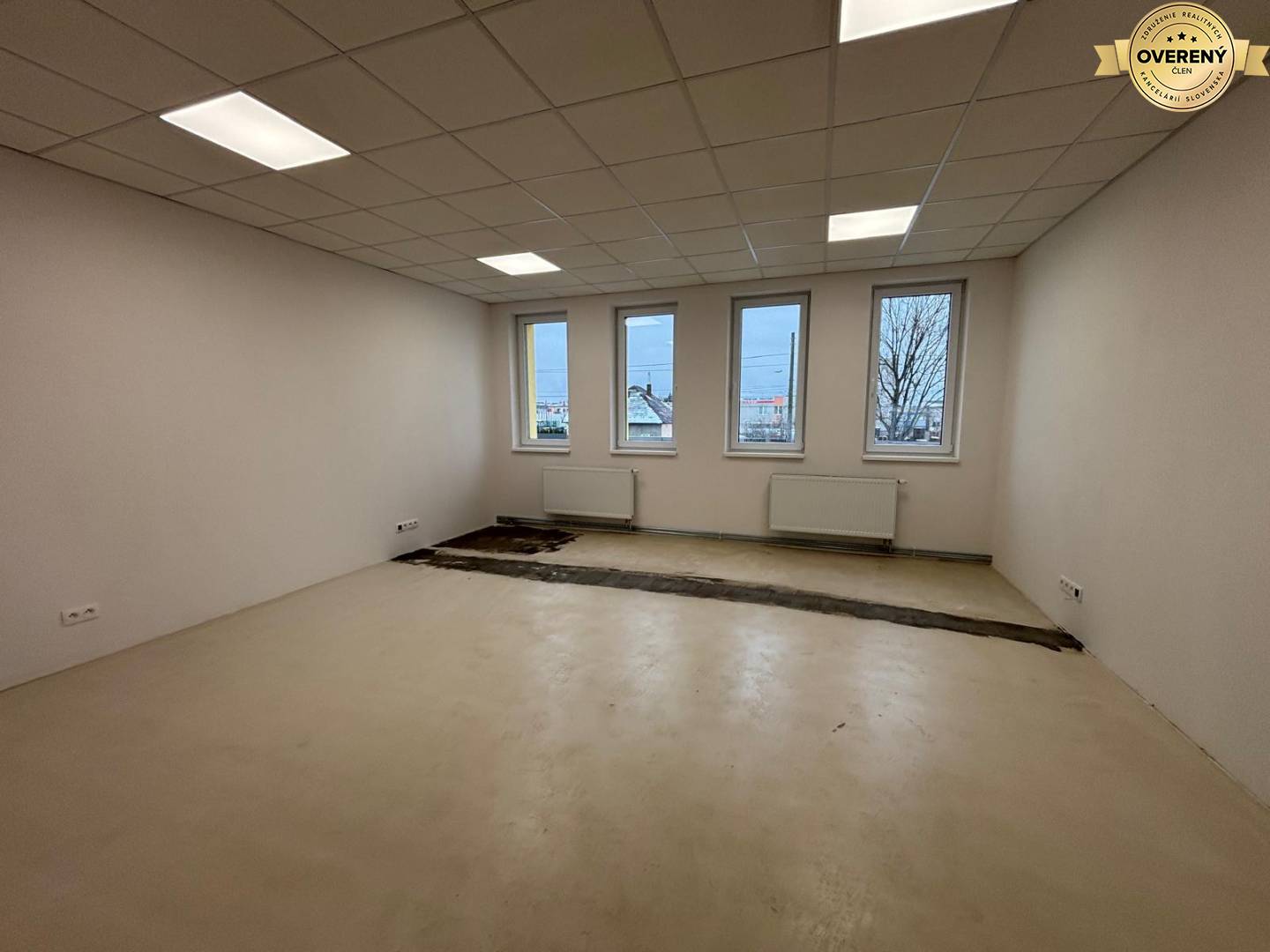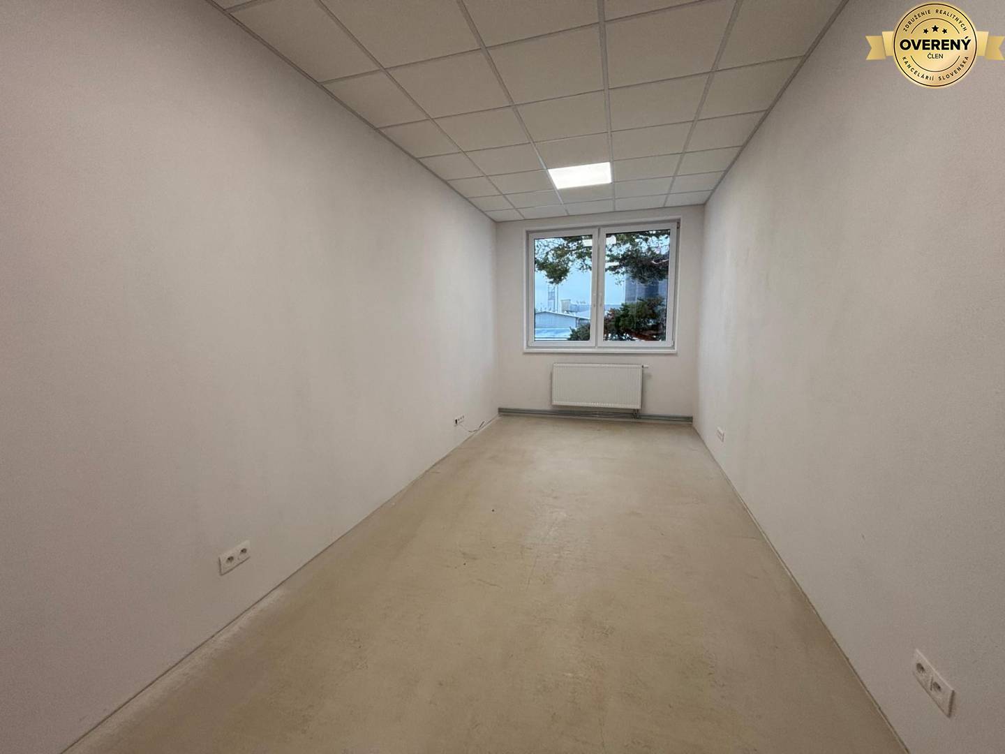 Samostatný kancelársky priestor na 1. poschodí o veľkosti 32,49m². Cena: 12€/m² vrátane energií + DPH