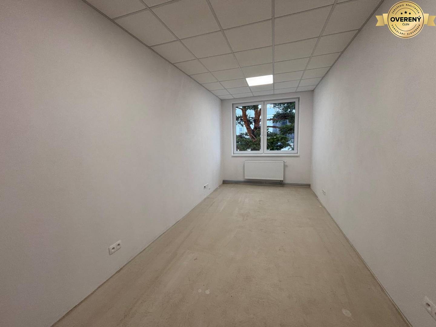 Samostatný kancelársky priestor na 1. poschodí o veľkosti 13,43m². Cena: 12€/m² vrátane energií + DPH