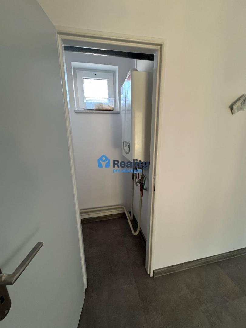 Druhá miestnosť má predprípravu na kuchynku, má vstup do technickej miestnosti /kondenzačný plynový kotol/ a do sociálneho zariadenia /WC a umývadlo s oknom/.