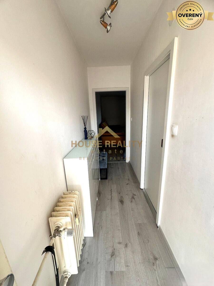 Predsieň, obývačka spojená s kuchynským kútom, spálňa, samostatné WC, kúpeľňa, pavlač.