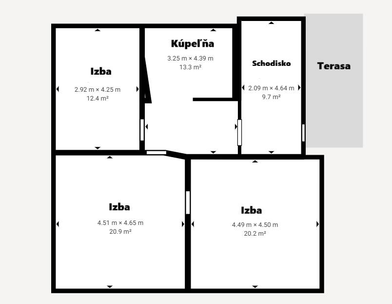 Dispozícia: 5 izieb, 2 kúpeľne