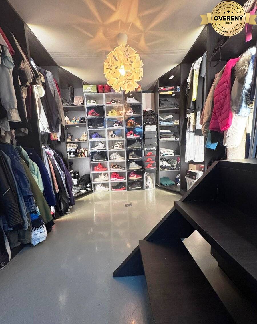 Garáž, slnečná izba na poschodí s vlastnou kúpeľňou, šatníkom, technickou miestnosťou a veľkým úložným priestorom na podkroví