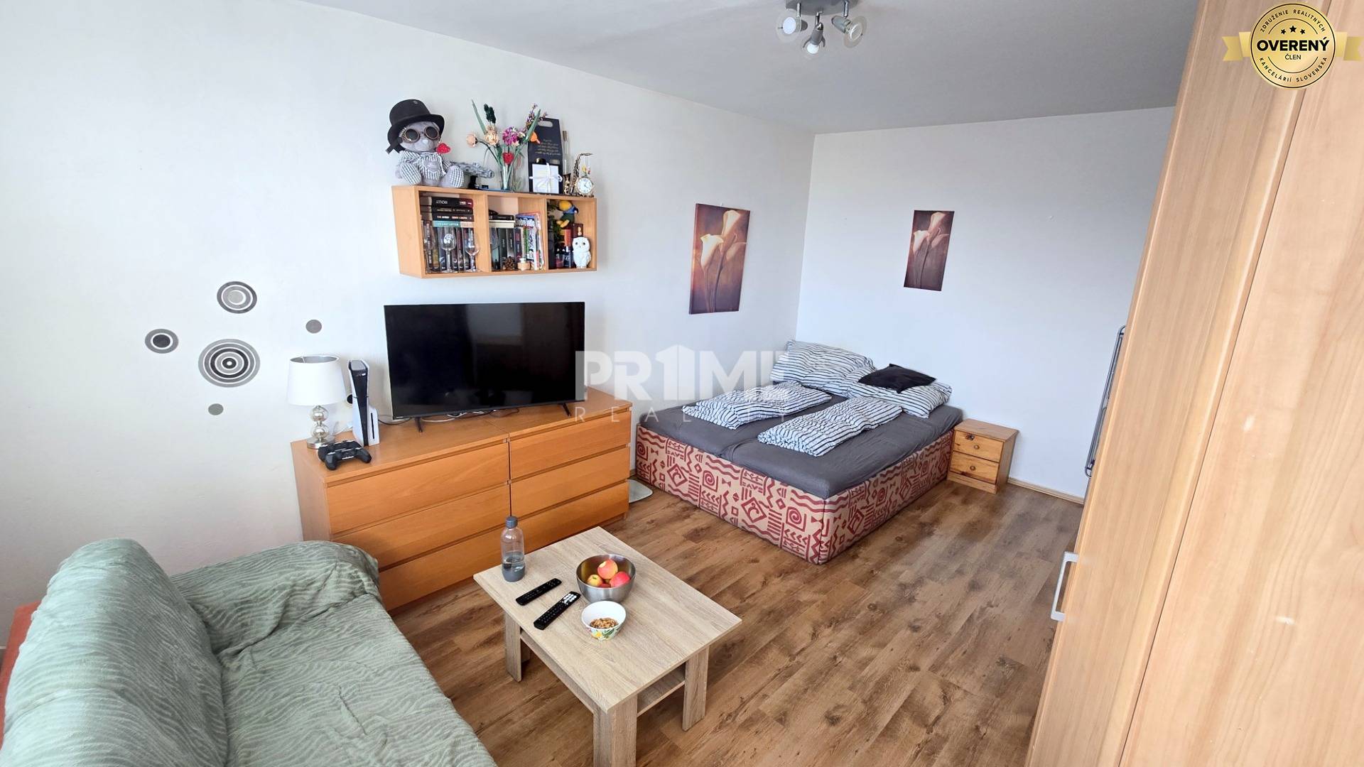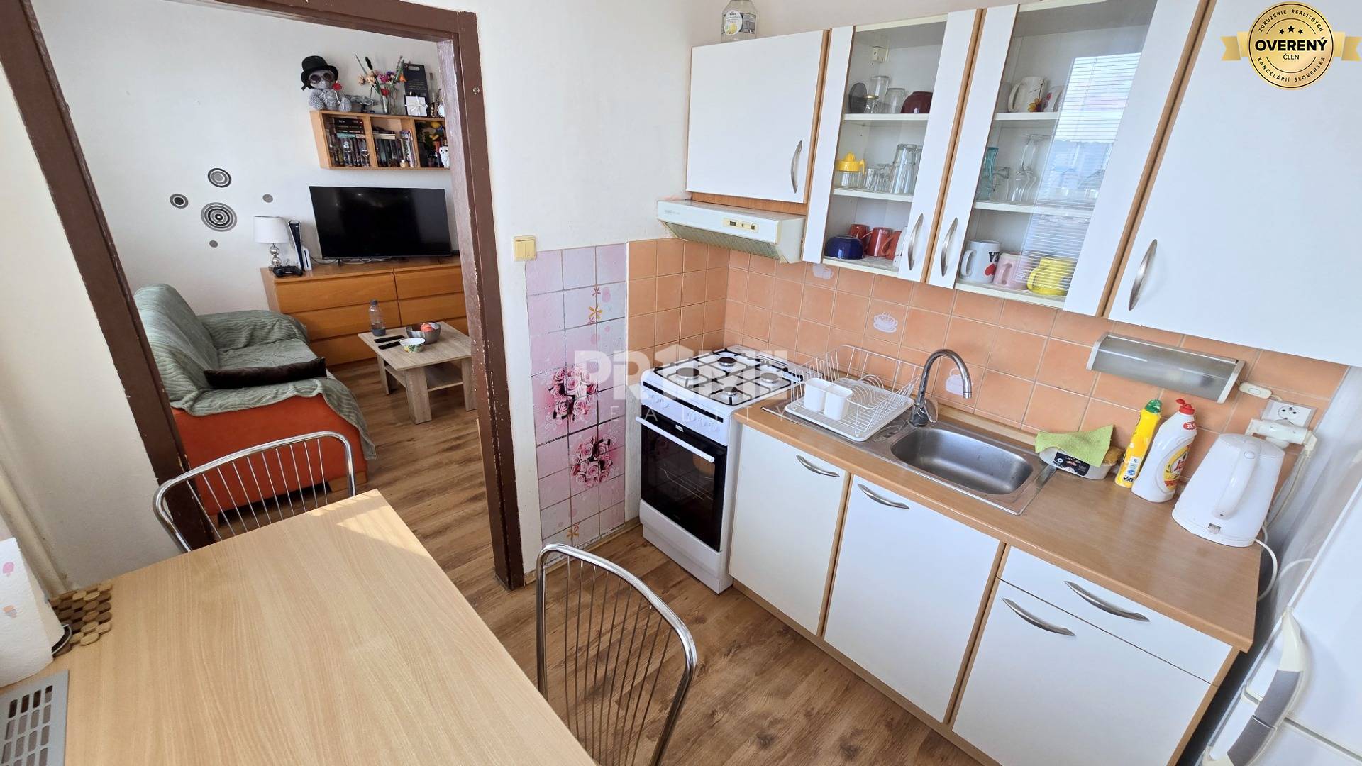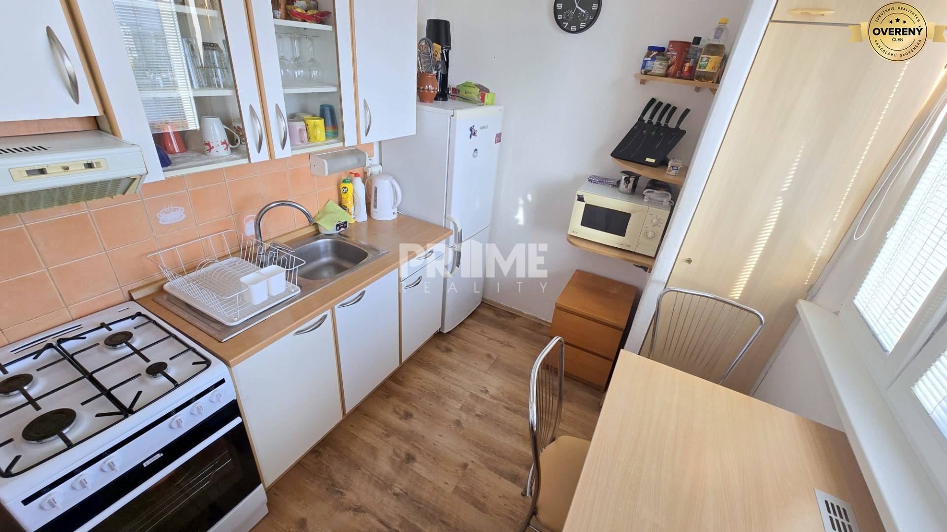 Byt sa predáva zariadený: kuchynská linka, chladnička s mrazničkou, mikrovlnná rúra, jedálenský stôl so stoličkami, manželská posteľ, šatníková skriňa na mieru, TV prijímač, práčka.