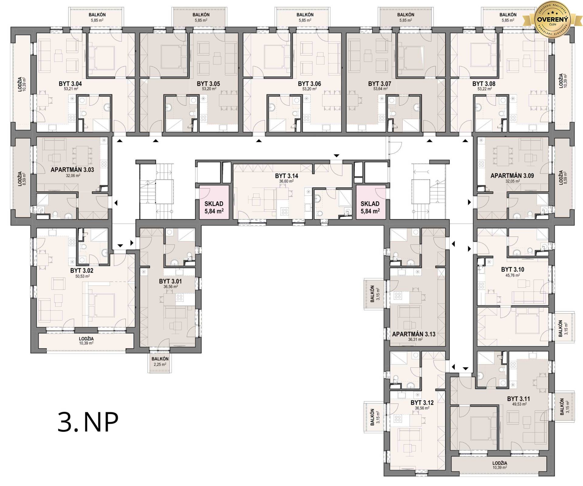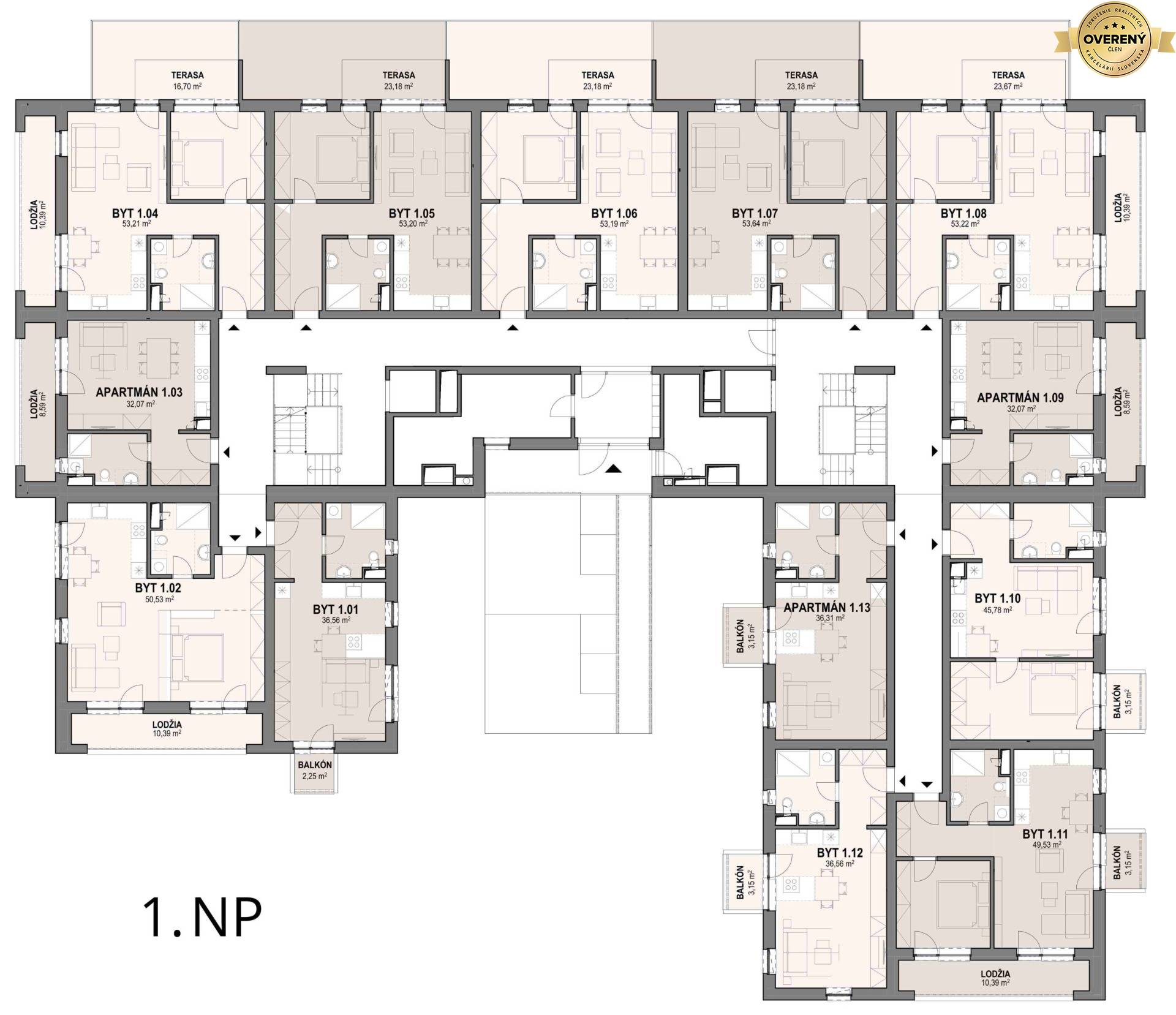 - 1-izbové byty s rozlohou od 31,50 - 36,80 m2: Ideálne ako štartovacie bývanie alebo investícia na prenájom.