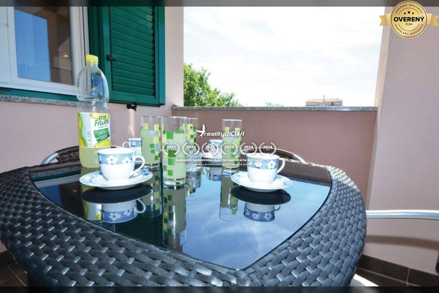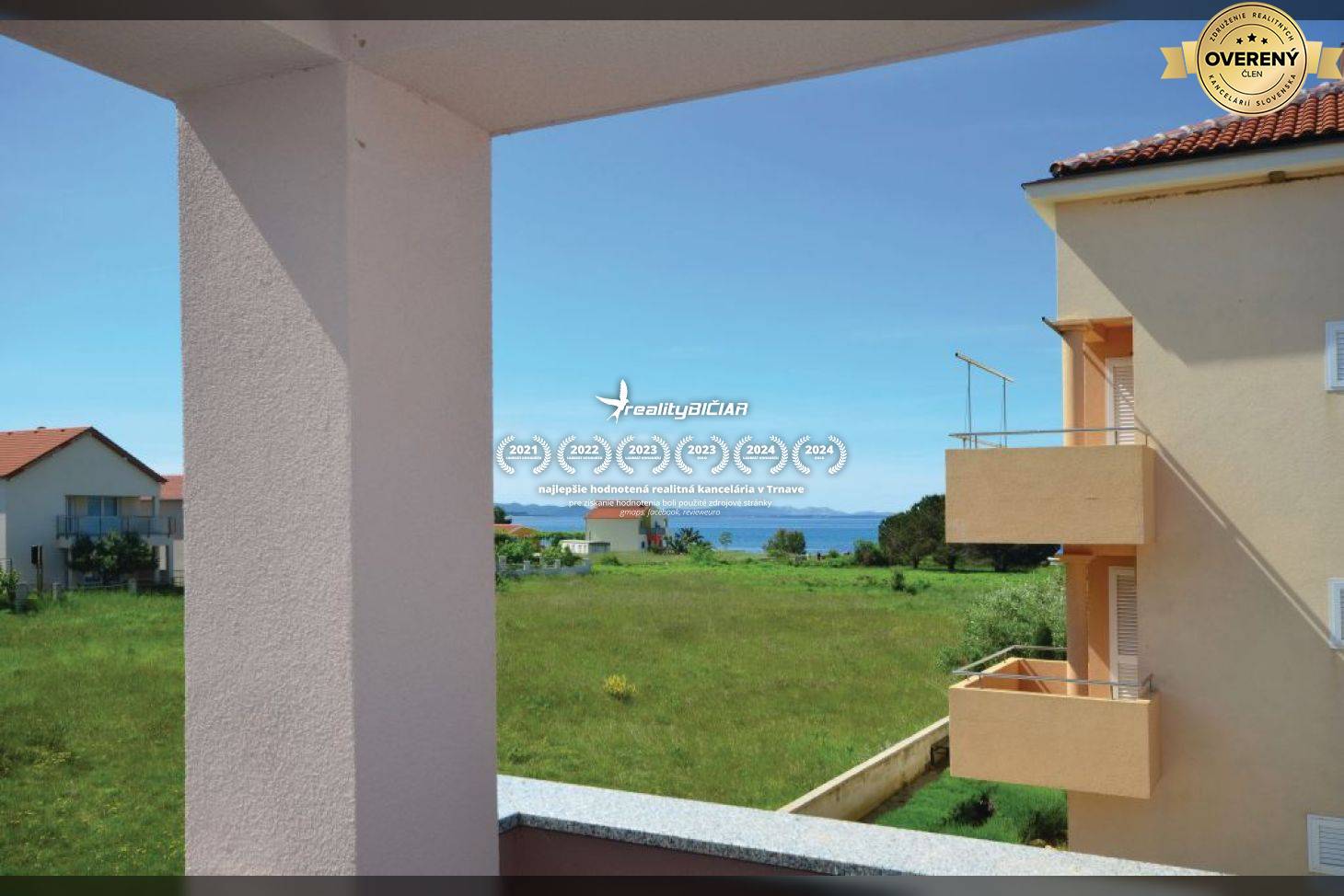 Z balkóna (lodžie) je čiastočný výhľad na more.