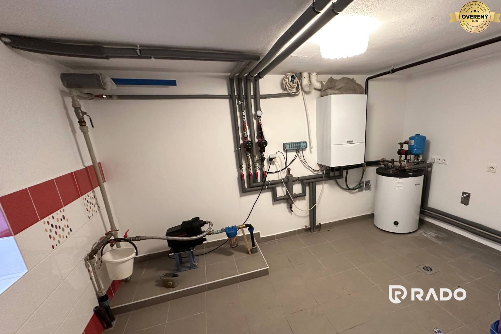 Približne polovica budovy (70 m2) je podpivničená, v suteréne sa nachádza garáž, technická miestnosť s kotolňou a ďalšie 2 miestnosti. Priestory sú čisté, suché, je možné ich využívať aj ako sklad, alebo archív. Budova je napojená na elektrinu, plyn, kanalizáciu, vodovod a navyše má aj vlastnú studňu. Kúrenie je plynové, v suteréne a na prízemí sú radiátory, na poschodí je podlahové kúrenie. V prípade potreby je možné úplne rozdeliť vykurovanie aj elektrinu na podlažiach na dve samostatné odpočtové jednotky.