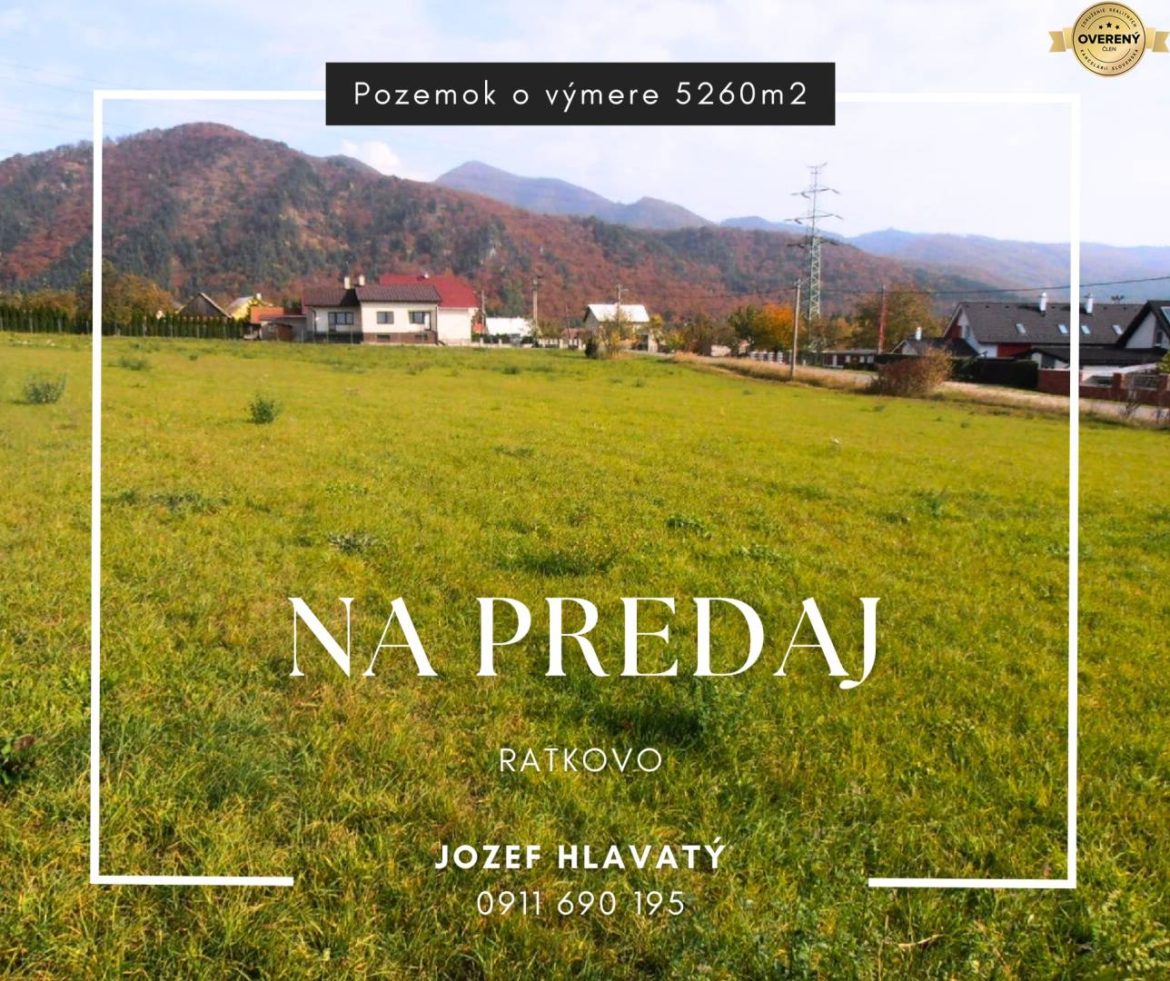 Ponúkame Vám na predaj rovinatý pozemok s výmerou 5.260 m2 v obci RATKOVO, okr. Martin.
