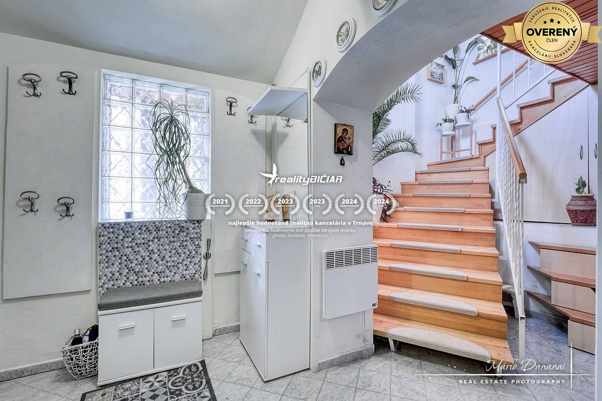 Nehnuteľnosť je postavená na svahovitom pozemku s rozlohou 508 m² a podlahovou plochou 245 m², je rozdelená na dve samostatné bytové jednotky – ideálne riešenie pre dvojgeneračné bývanie alebo investičné využitie.