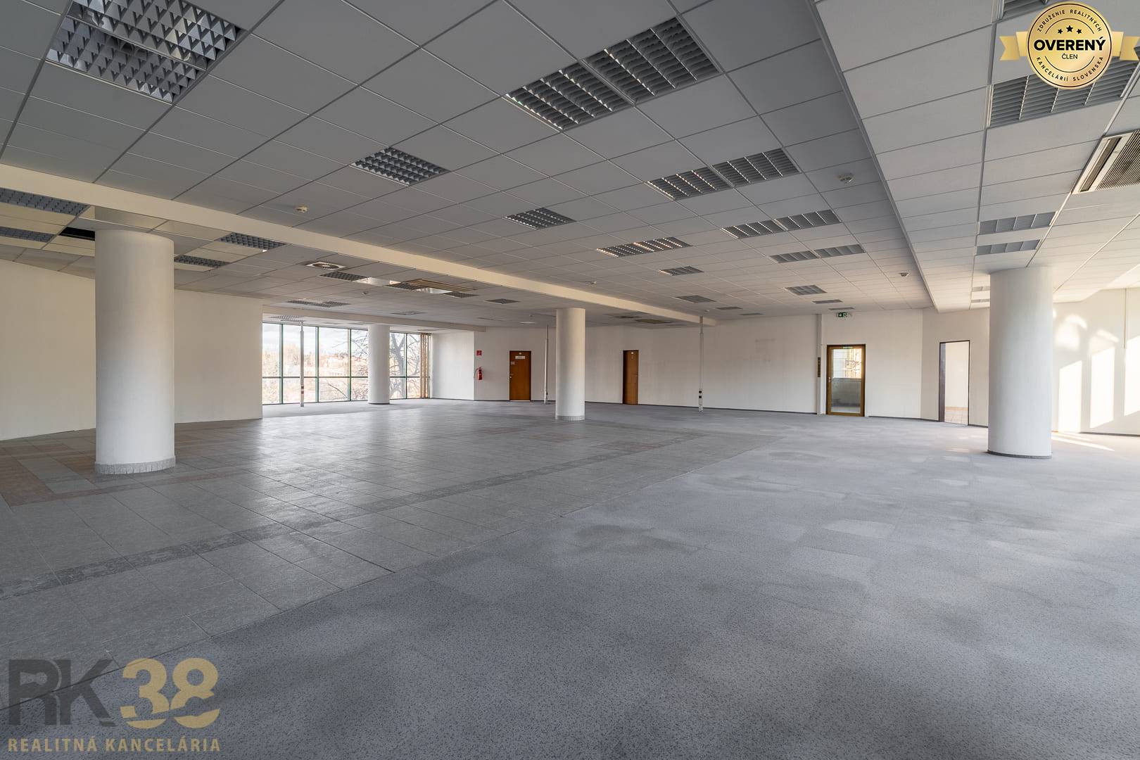 - 2. poschodie – cca 760 m² - Otvorený administratívny priestor s vlastnou kuchynkou a sociálnym zázemím, s možnosťou dispozičných úprav podľa potrieb nájomcu.