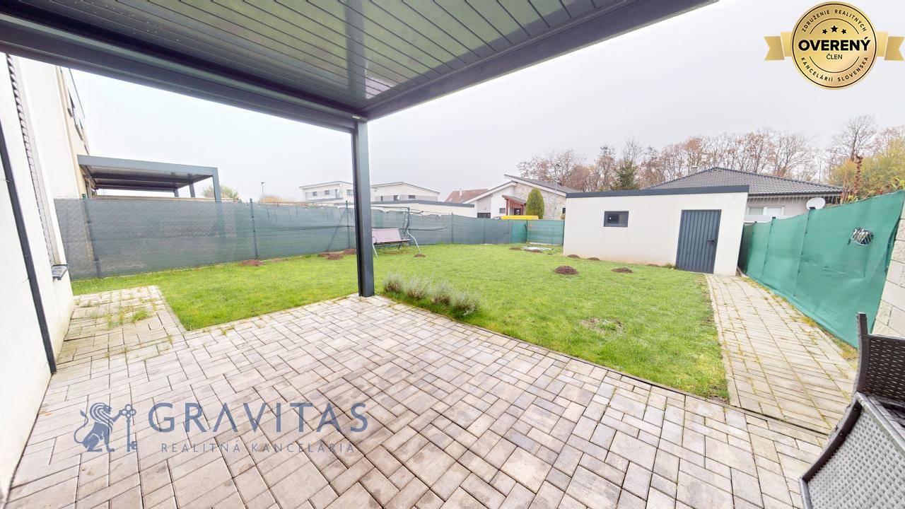 Dom je klimatizovaný a vybavený zabezpečovacím systémom-alarmom. Ku domu patrí aj samostatná garáž a taktiež dve parkovacie státia pred domom. Jedná sa o novostavbu kolaudovanú v r.2019.