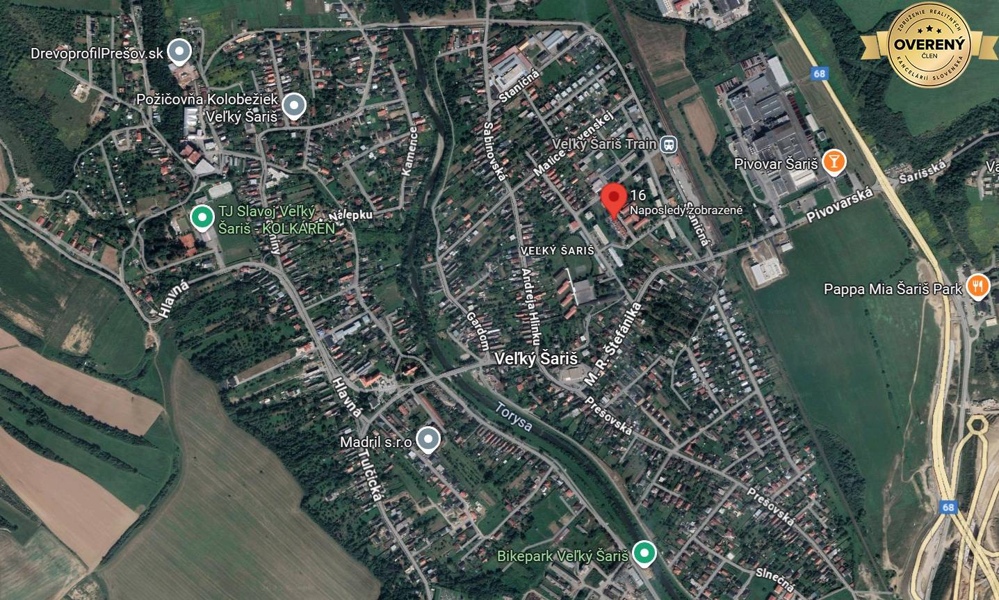 • Doprava: Výborné napojenie na verejnú dopravu (autobus aj železnica) a hlavne rýchla dostupnosť do Prešova (cca 6,5 km).