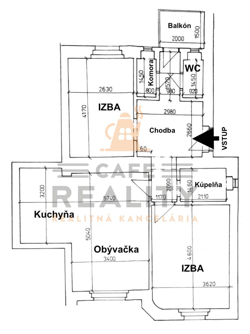 Pozostáva: zo vstupnej chodby s komorou, obývacej izby s kuchynským kútom, 2x spálňa (izby sú samostatné), kuchyne, kúpeľne s vaňou a samostatného WC a balkóna.