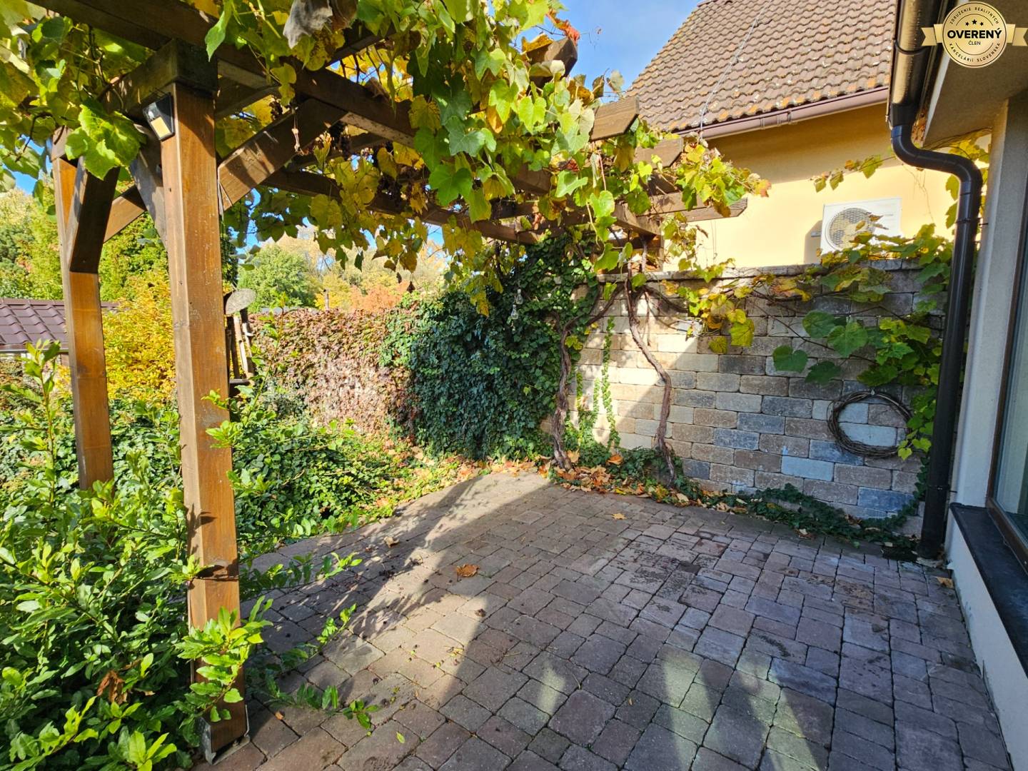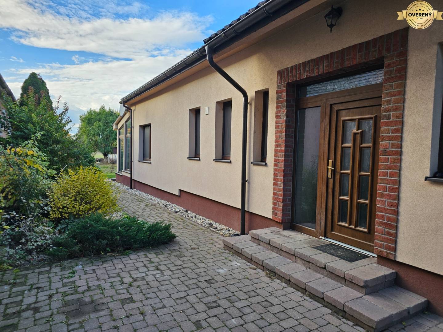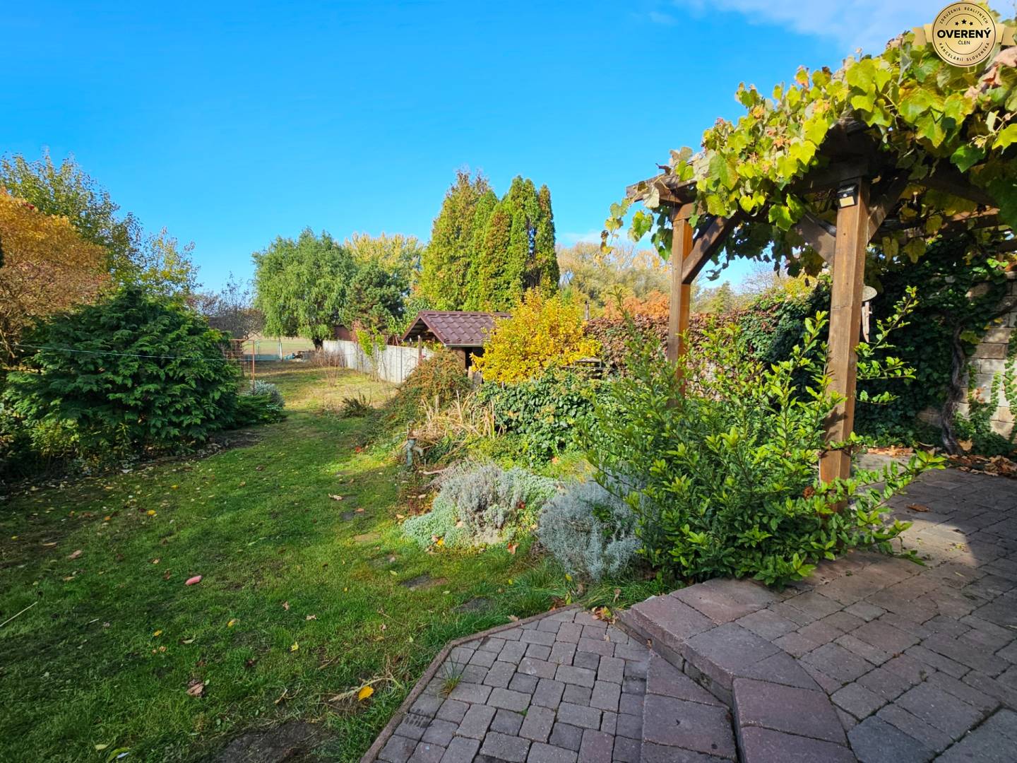 Neodmysliteľnou súčasťou domu je aj rovinatý terén pozemku vysadený trávou, ovocnými stromami a okrasnými rastlinami, ktorý dotvára celkový dojem.