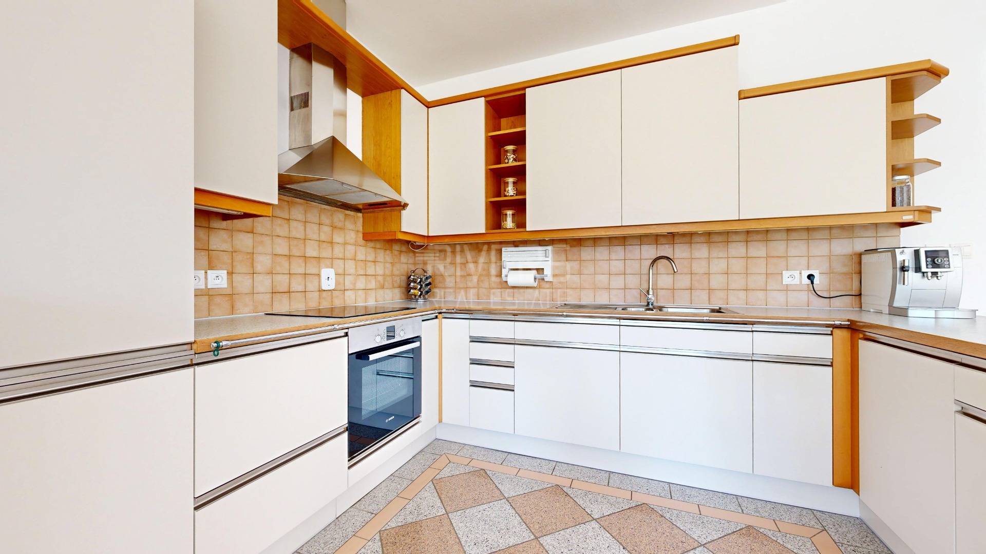 • Podlahy: laminátové, dlažby v kuchyni, kúpeľniach a chodbe