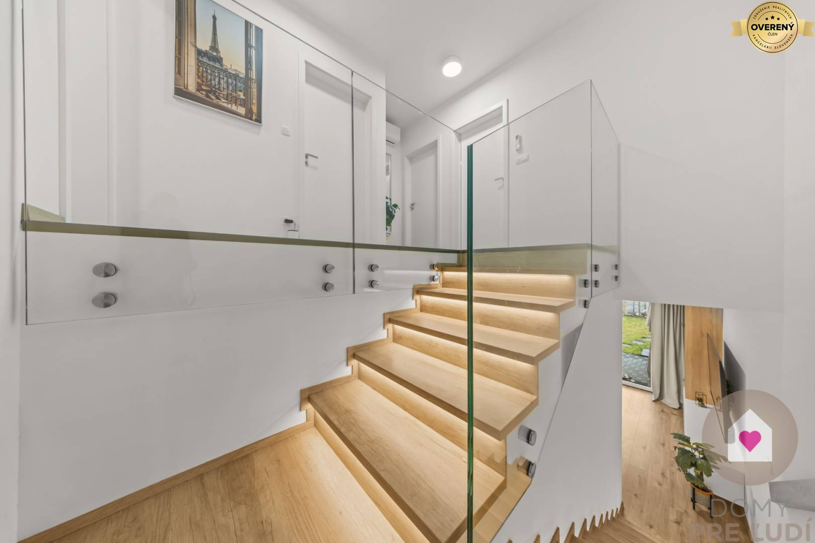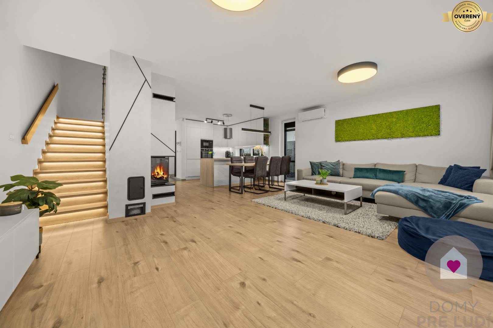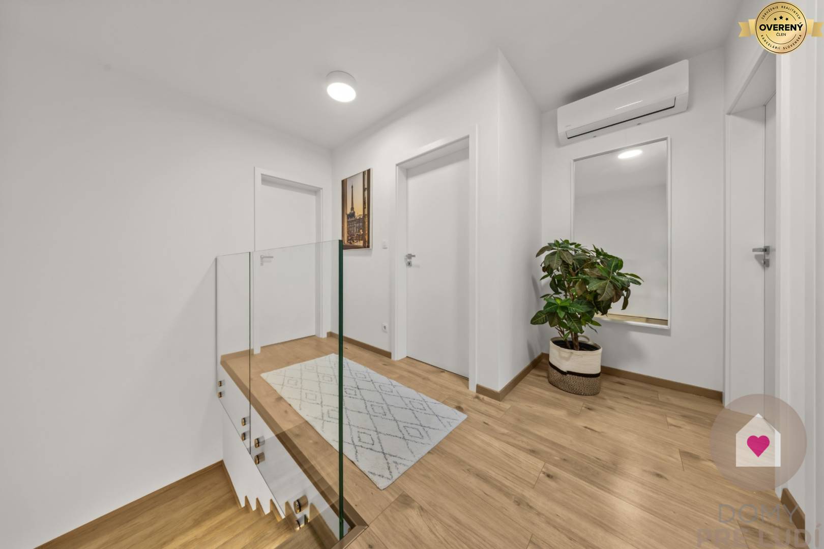 Situované sú tu 2 klimatizačné jednotky na oboch podlažiach a krb na prízemí v obývačke. Majitelia dali nainštalovať fotovoltiku a k domu sa dostanete bránou na el. ovládanie, za ktorou pohodlne zaparkujú aj 3 autá.