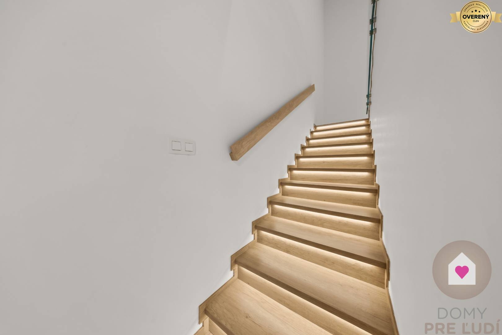 Veľkou výhodou je elektrické podlahové vykurovanie s možnosťou regulácie teploty v každej miestnosti samostatne vďaka termostatom - na prízemí a v hlavnej spálni ovládanie pomocou aplikácie.