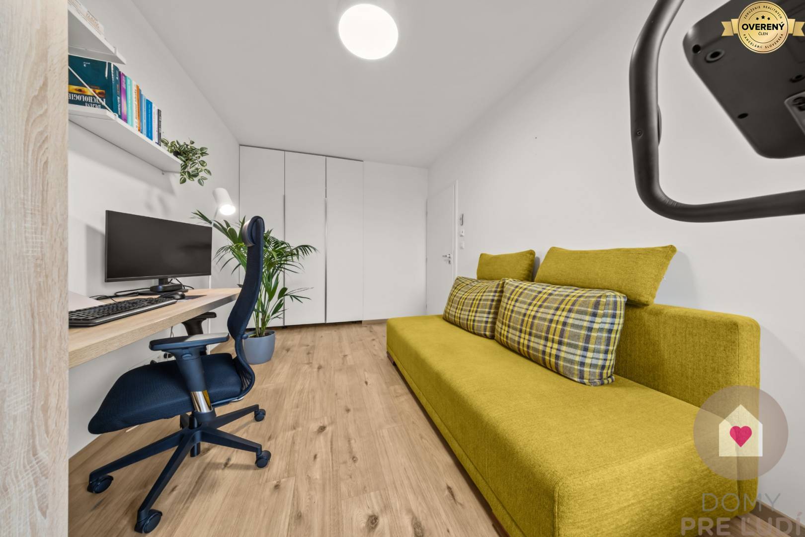 - druhá samostatná spálňa s gaučom, vstavanou skriňou pozdĺž celej steny, šatníkovou skriňou a pracovným stolíkom