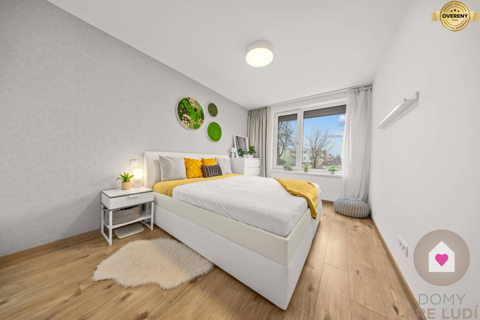 - nepriechodná spálňa s manželskou posteľou, veľkou šatníkovou skriňou, komodou a nočným stolíkom
