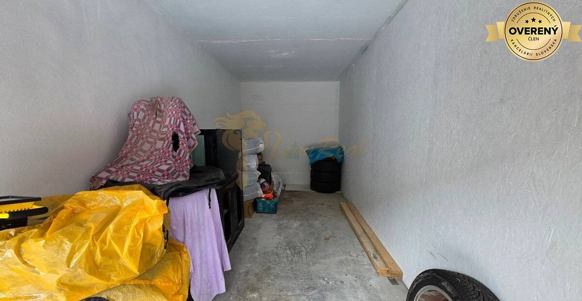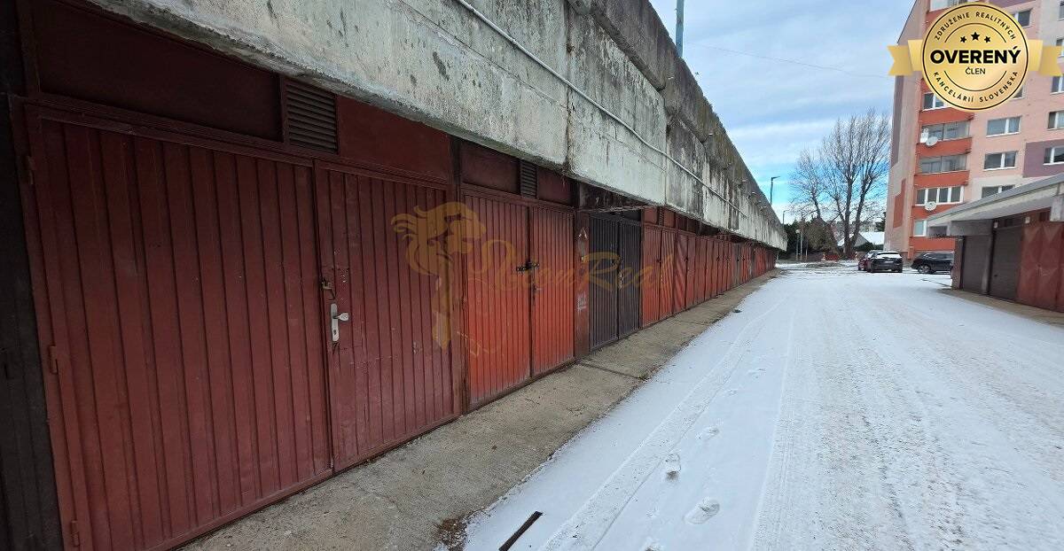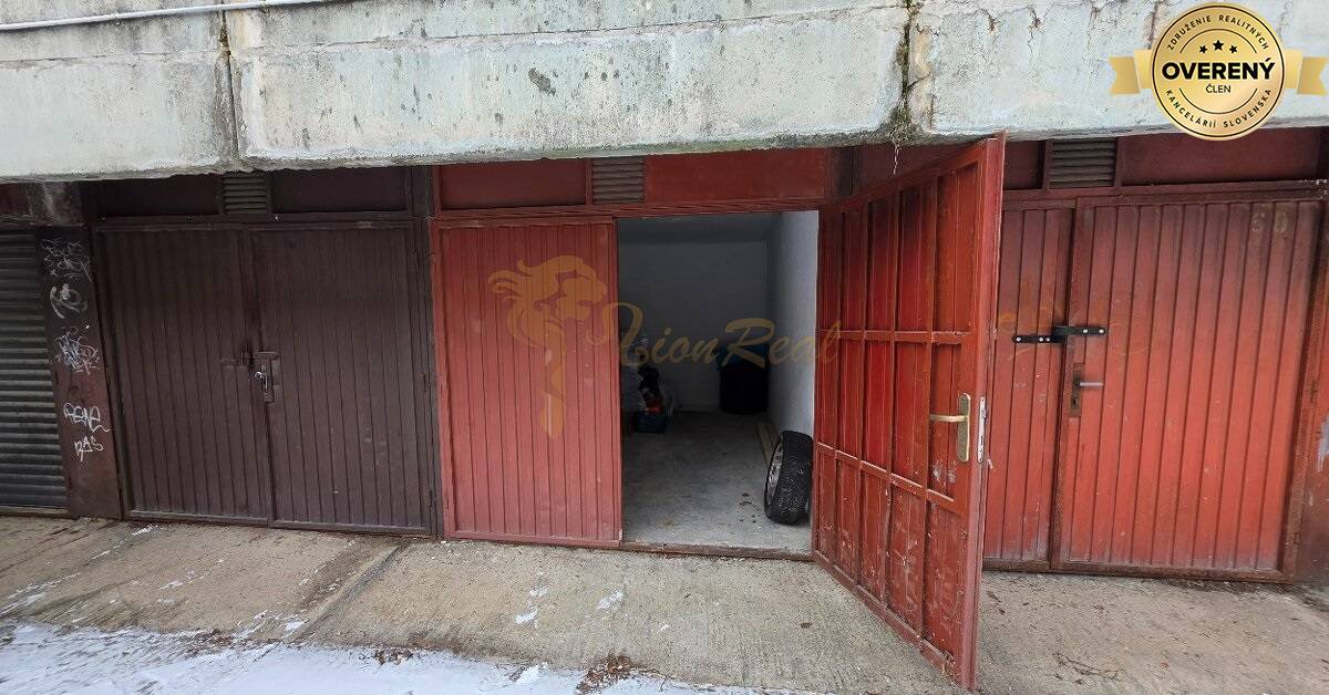 Výmera 13,5 m2, nachádza sa v radovej zástavbe garáží, otváranie dvojkrídlová brána. Pozemok pod garážou je v osobnom vlastníctve. Aktuálne je v procese zavedenie elektriny do garáže, čiže pri predaji bude v garáži aj elektrina.