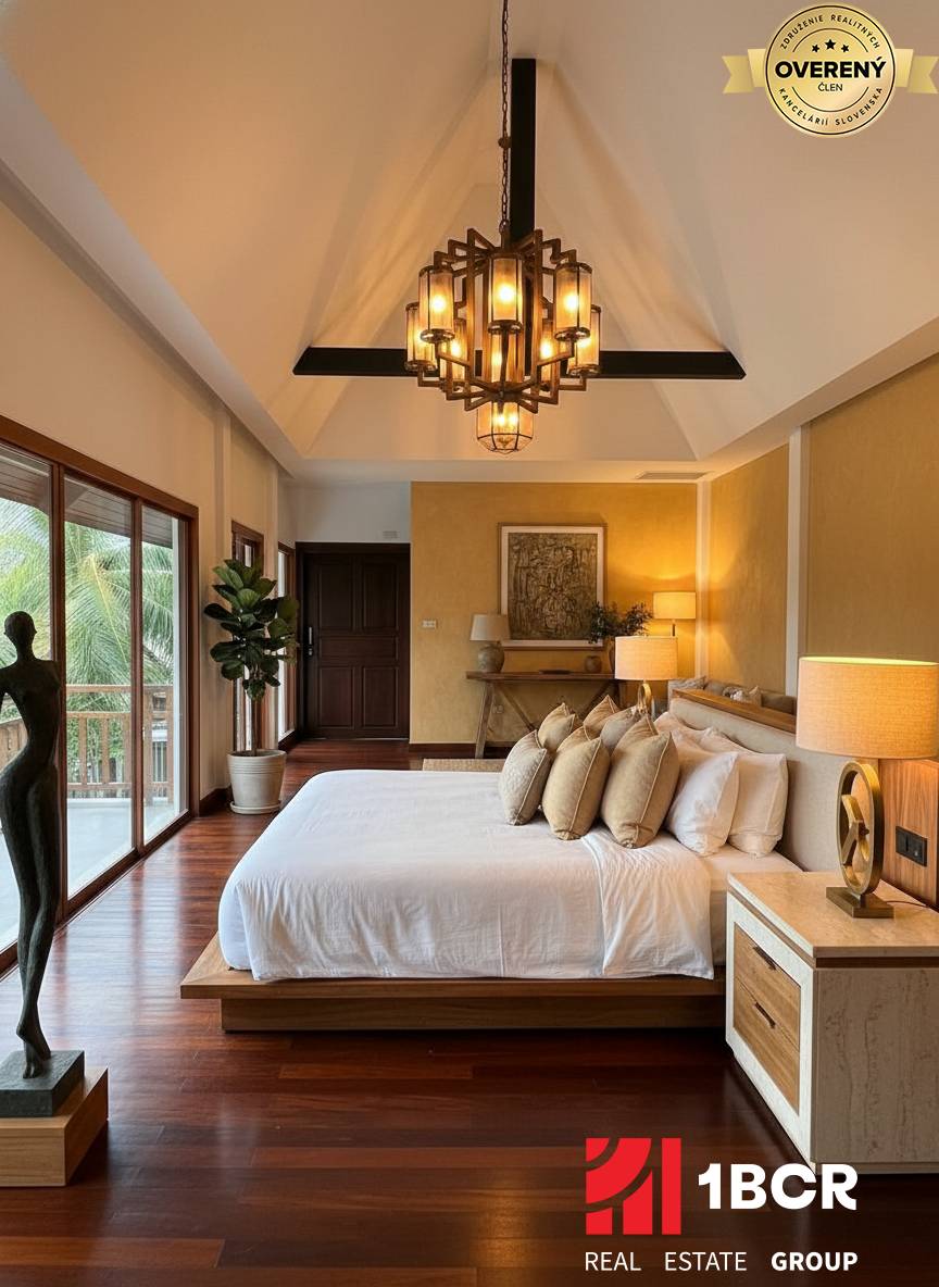 Vila ponúka celkovo 5 priestranných spální, pričom každá má vlastnú kúpeľňu. Hlavná spálňa disponuje veľkým walk-in šatníkom a exkluzívnou kúpeľňou s terasou, čo ešte viac podčiarkuje prémiový štandard bývania. Súčasťou nehnuteľnosti je aj veľká tropická záhrada s luxusným kamenným bazénom so slanou vodou, ktorá vytvára ideálny priestor na oddych, rodinné chvíle aj spoločenské stretnutia. V záhrade sa nachádza aj krytý altánok, ktorý poskytuje skvelé miesto na sedenie v tieni počas horúcich dní alebo na súkromný večerný relax. Atmosféru dotvárajú pôvodné tropické stromy, ktoré poskytujú prirodzený tieň a dodávajú celej záhrade jedinečný charakter.