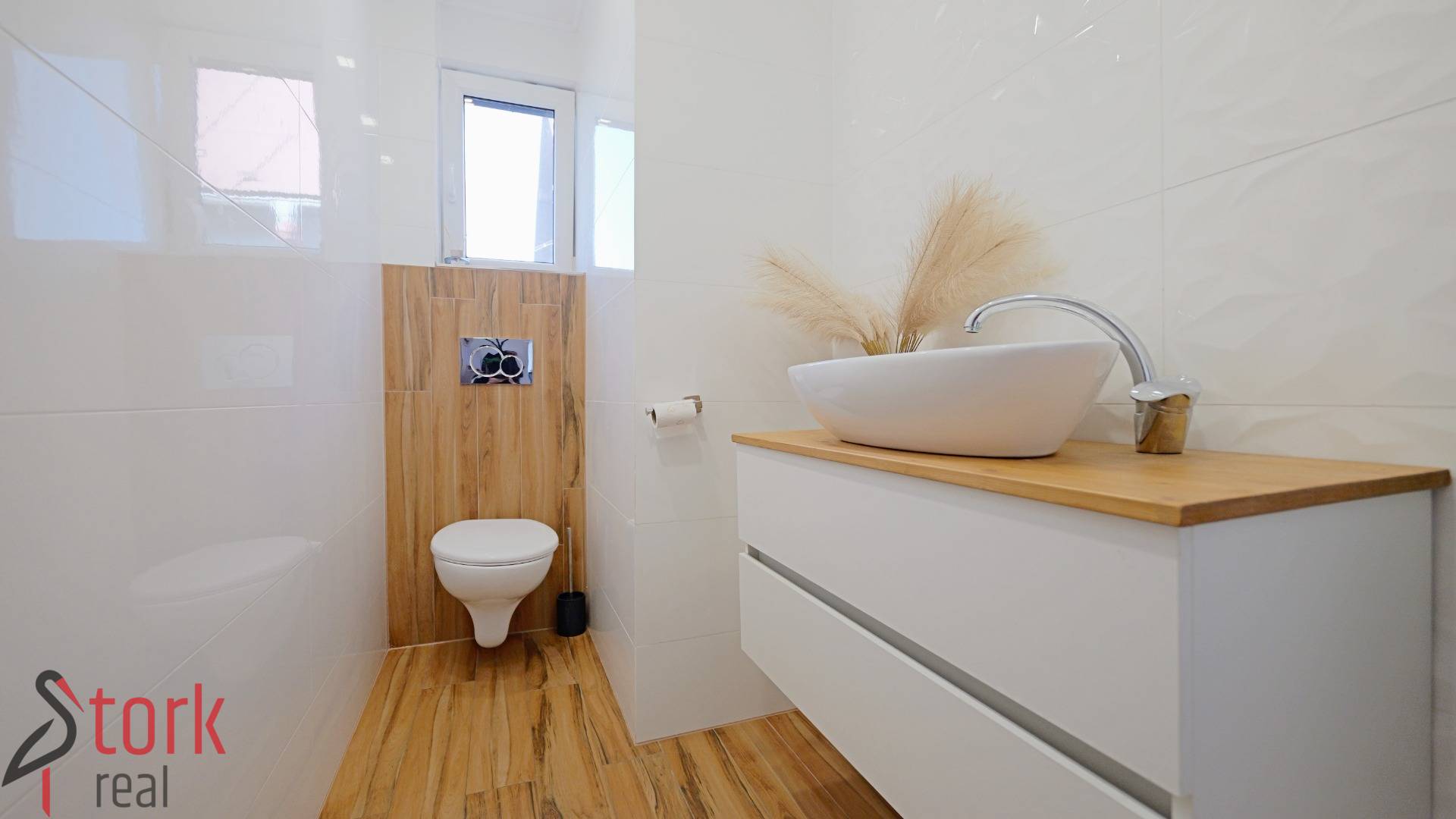 Jedná sa murovaný rodinný dom (škvarobetón + tehla) s úžitkovou plochou 80m². Dokončením domu sa úžitková plocha zväčší na 125m². Je napojený na inžinierske siete - elektrina, verejný vodovod, kanalizácia. V prípade potreby je možné napojiť sa aj na plyn - dostupný v ceste pred domom. Hlavná časť domu prešla nedávno kompletnou rekonštruciou- nové rozvody vody a odpadu, elektroinštalácia, plastové okná, plávajúce podlahy, podlahové kúrenie, sadrokartónové stropy, stierky, sanita, kuchynská linka so zabudovanými spotrebičmi (chladnička, umývačka, mikrovlnka, el. rúra, indukcia), interiérové dvere s obložkami a pod. Vykurovanie domu je elektrické podlahové, v kúpeľni je umiestnený aj rebríkový radiátor. Čo sa týka časti, ktorú treba dokončiť, bol zhotovený nový krov bez krytiny a nakúpené sú francúzke okná do izieb a plávajúca podlaha. Súčasťou domu je aj letná kuchynka s výmerou 15m². Vstup do nej je samostatný, zvonku. K dispozícii je aj garáž na jedno auto.
