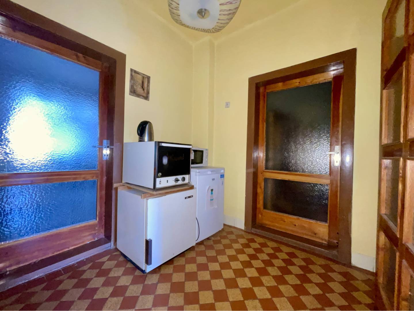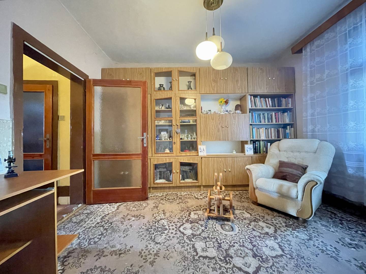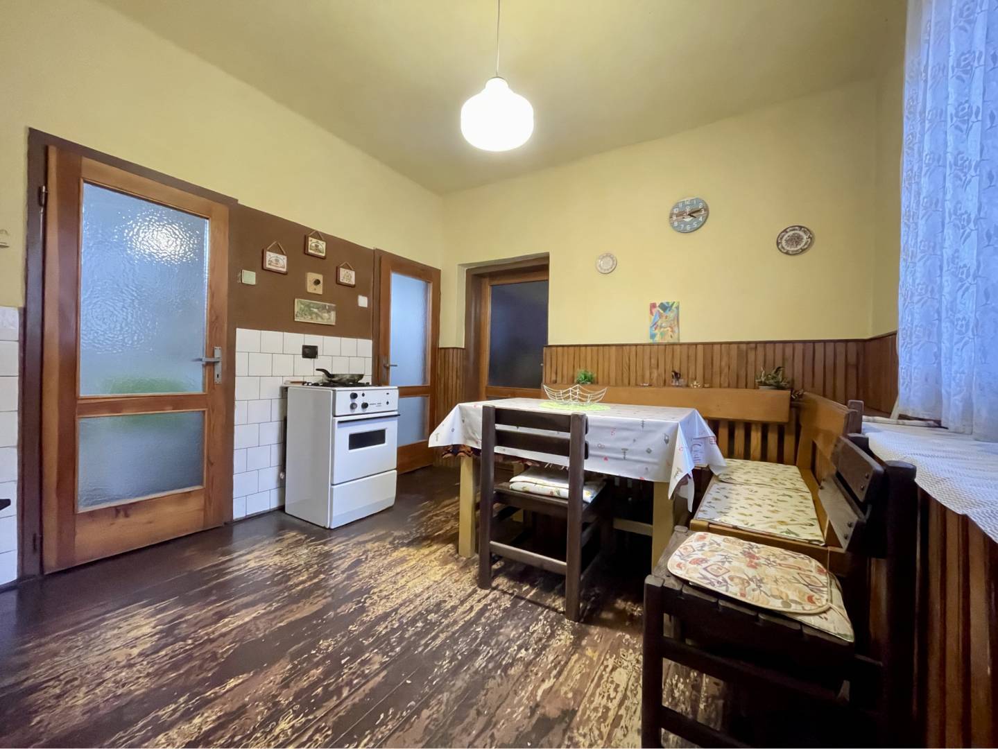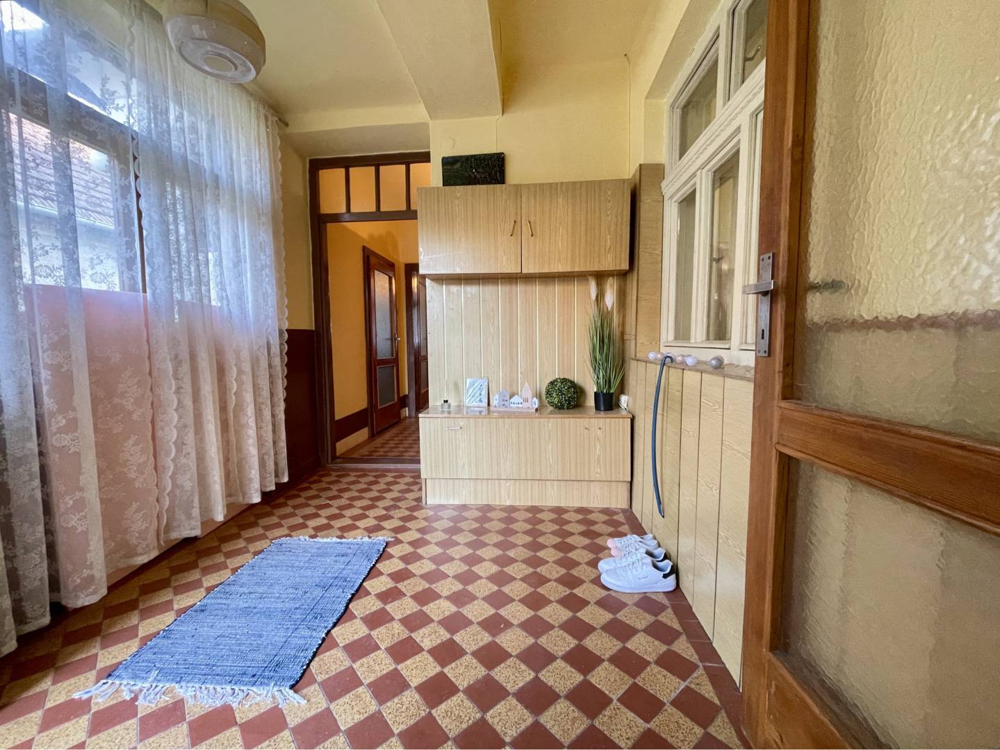 Po vstupe do domu sa dostaneme do predsiene, odtiaľ je vchod do kuchyne a do miestnosti vstupom do spálne, do detskej izby a do špajze. Z detskej izby a z spálne je vstup do ďalšej izby. Z kuchyne je vstup do kúpeľne, do samostatného toaletu a do štvrtej izby.