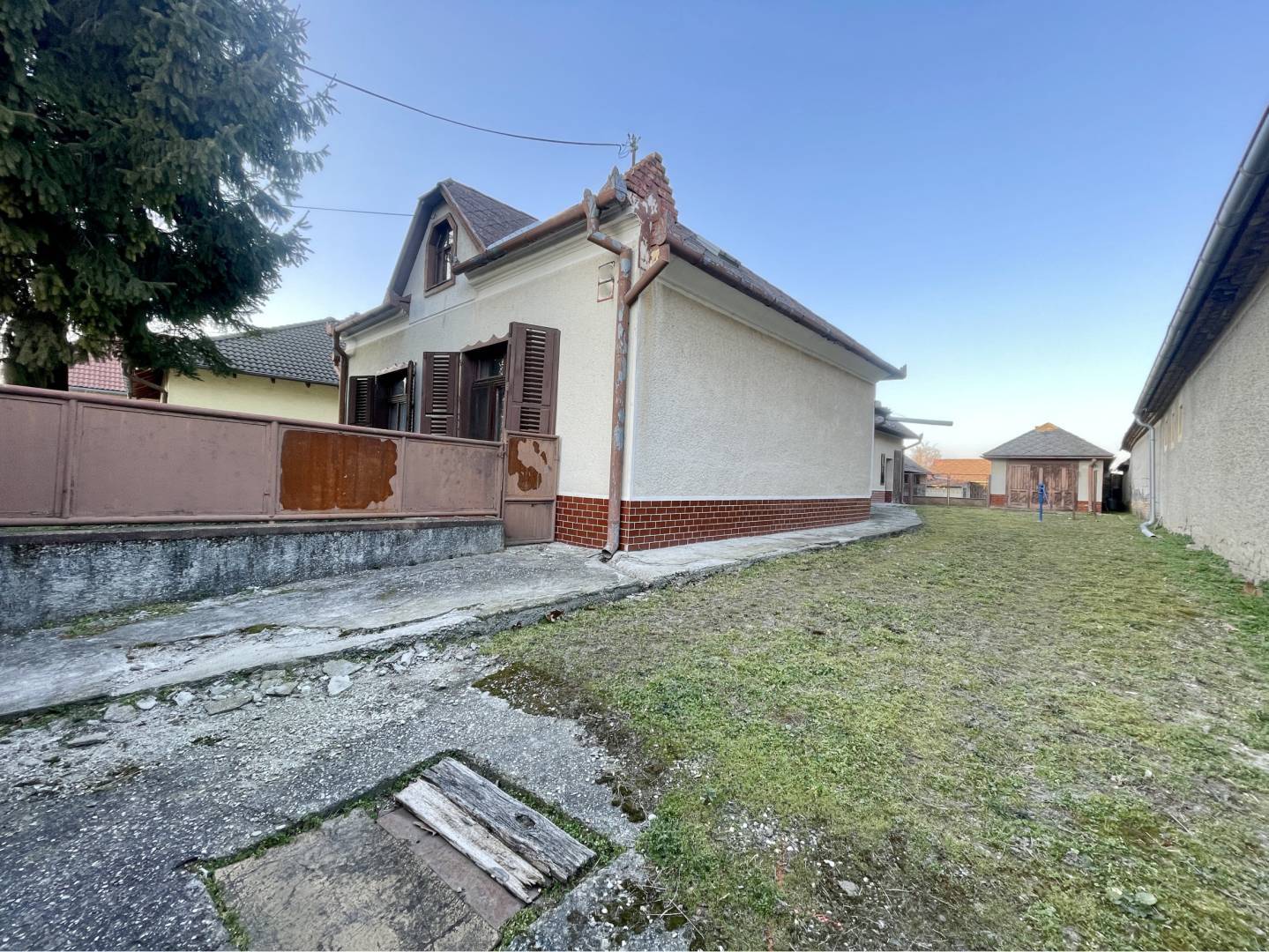 Vo dvore sa nachádza garáž a vedľajšie budovy.