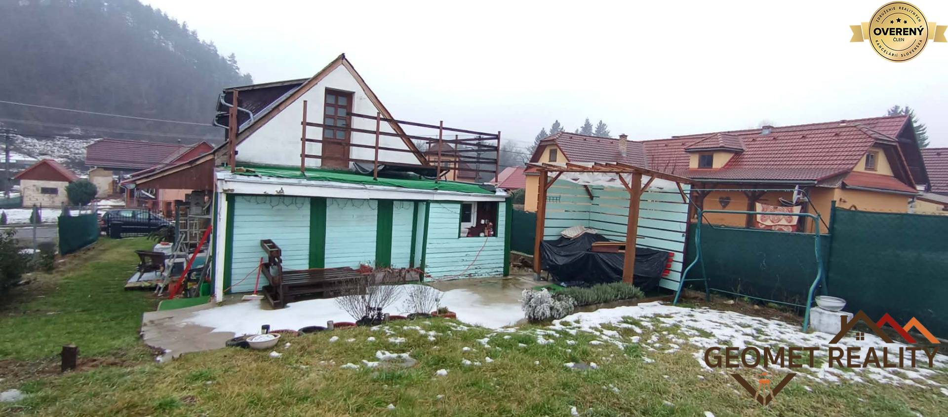 • Zadná terasa s prístreškom: Miesto na letný relax s vírivkou (v cene, momentálne odložená).