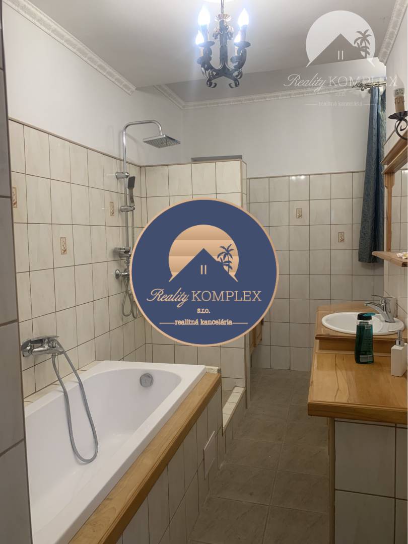 Priestranná kúpeľňa má veľkú vaňu, ako aj sprchovací kút a je spojená s toaletou. Vstup do kúpeľky je možný aj z nádhernej terasy.