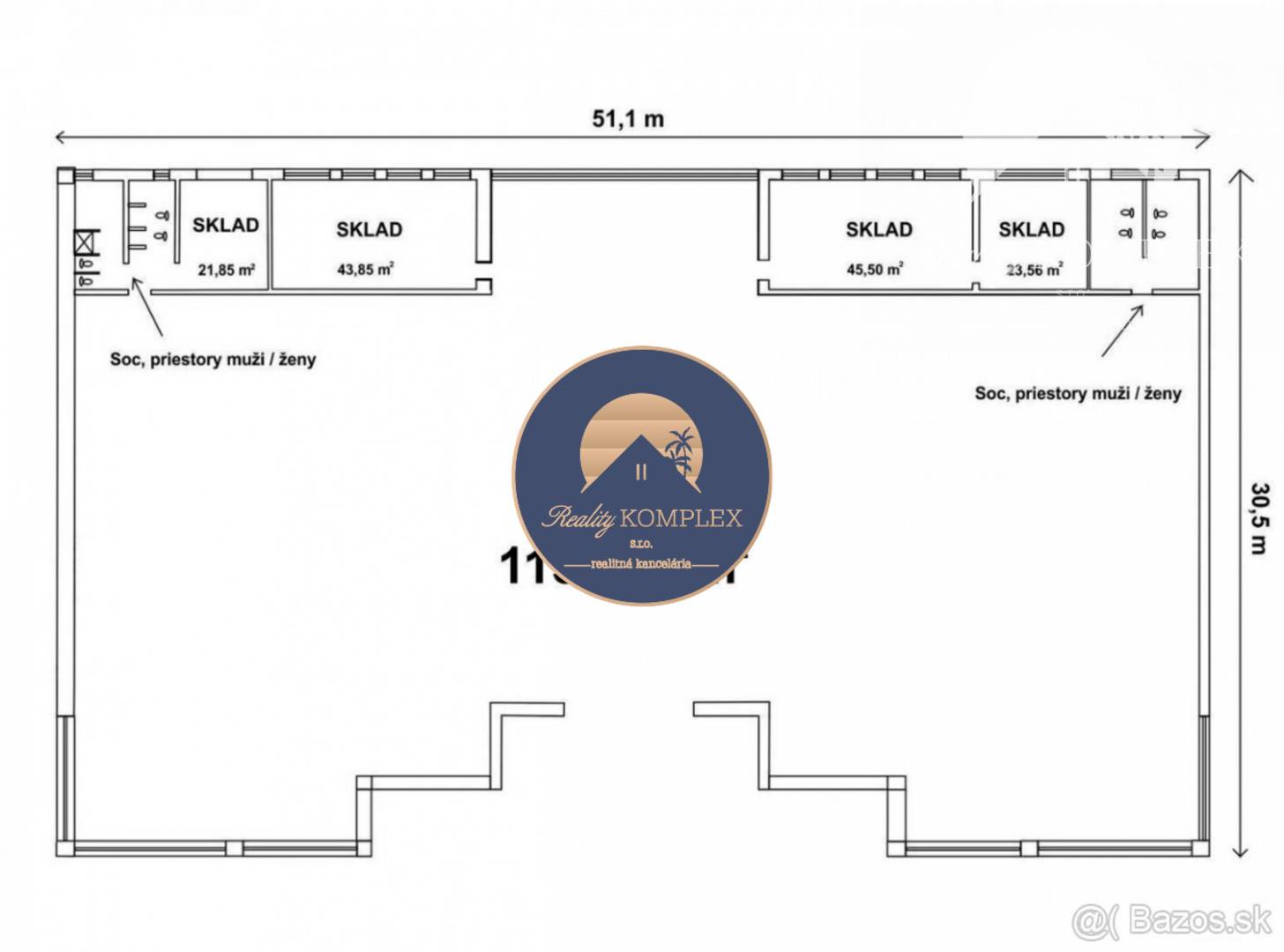 Plocha pozemku je 1788 m2, z čoho 1293 m2 je úžitková plocha budovy s troma kancelárskymi priestormi, sociálnou miestnosťou a kuchyňou. V celom areáli nájdete až 4 toalety a priestrannú sprchu - cca 40 m2.