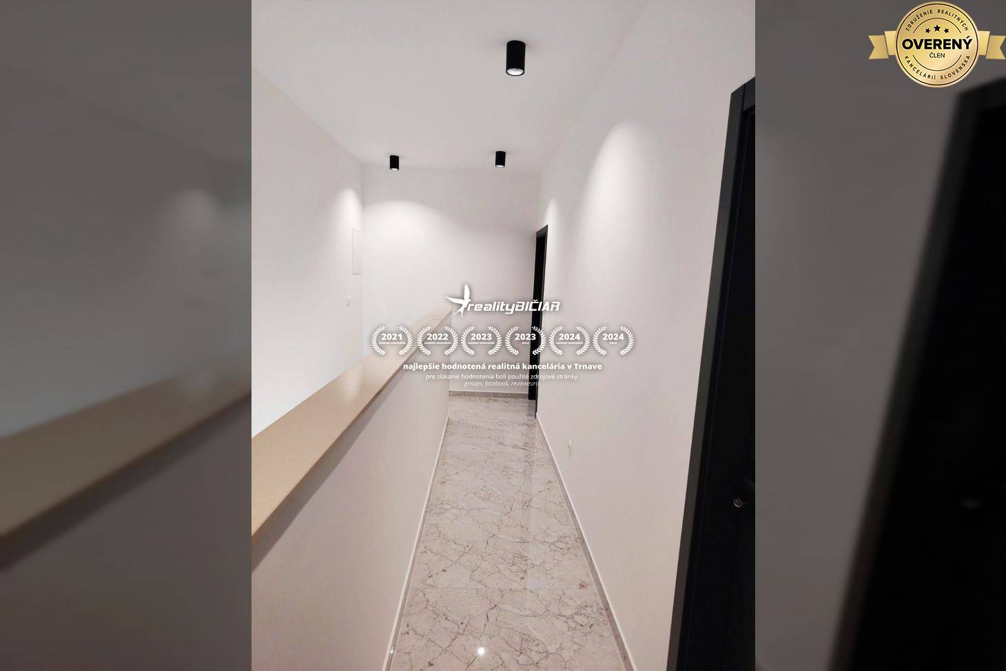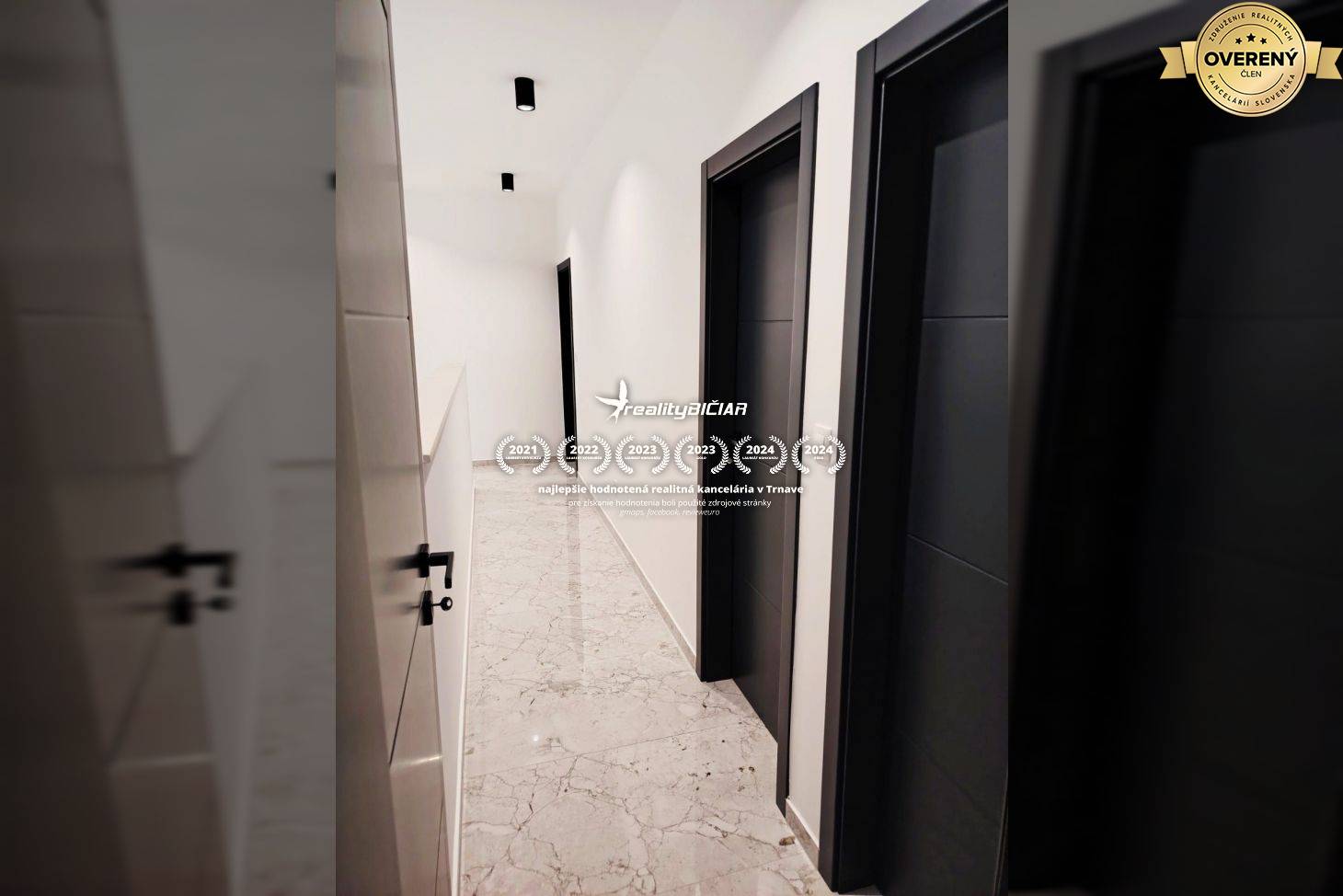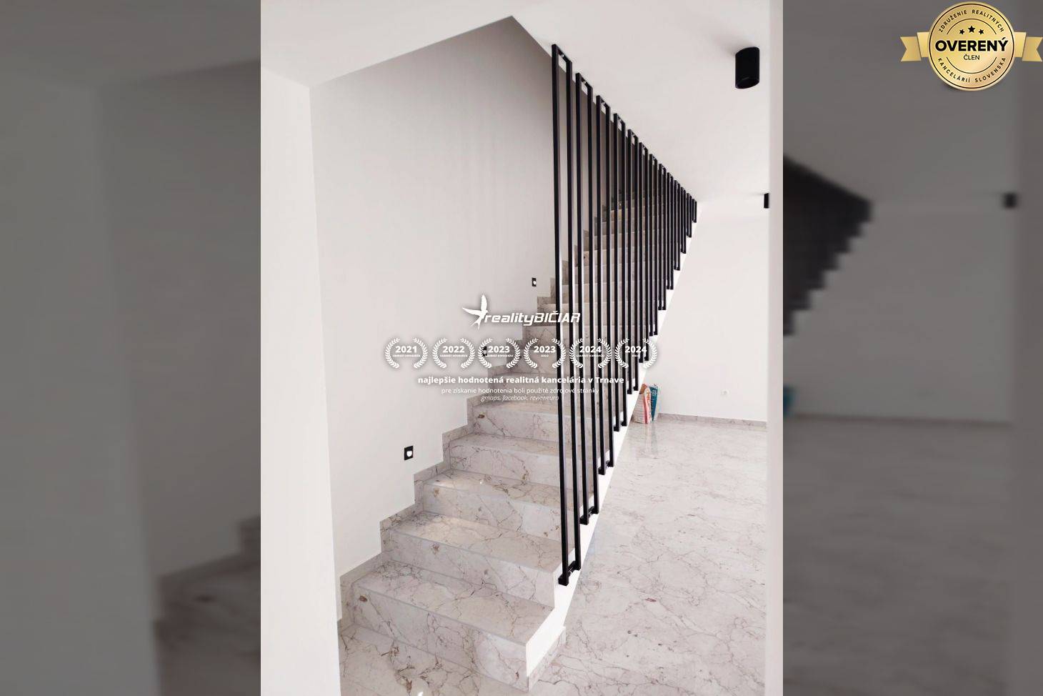 Na hornom poschodí sa nachádza chodba, ktorá vedie do 3 spální a dvoch kúpeľní a terasy.