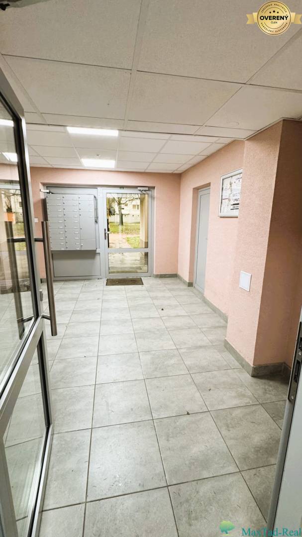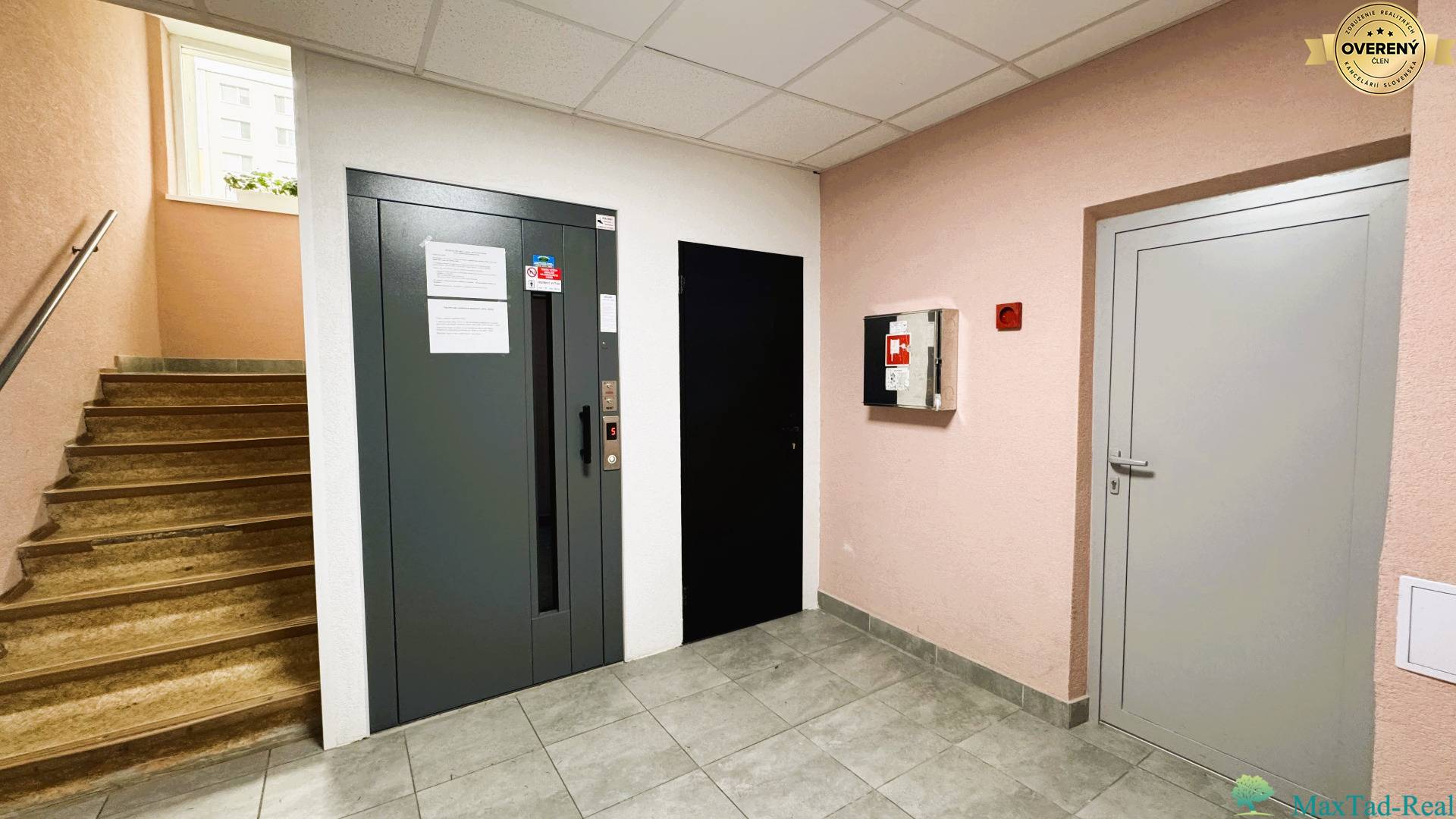Bytový dom pôsobí veľmi udržiavane – čisté spoločné priestory, nový výťah, elektronický vrátnik, upravené okolie a dostatok zelene pred domom.