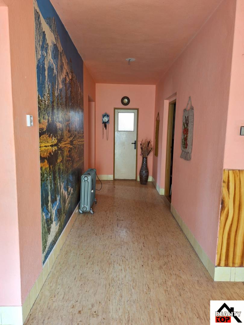 Na druhom podlaží sú 3 obytné miestnosti, kúpeľňa s vaňou a sprchovacím kútom + WC, špajza a chodba s balkónom a so schodiskom. Dom je priestranný, slnečný, steny sú suché bez prasklín. Okná sú pôvodné drevené, podlahy sú parkety, PVC a dlažby. Dom je napojený na elektrinu, plyn, vlastnú studňu a žumpu.