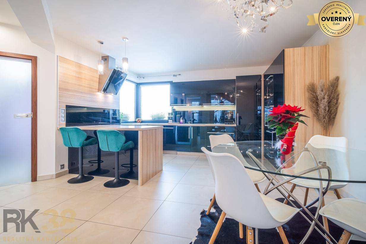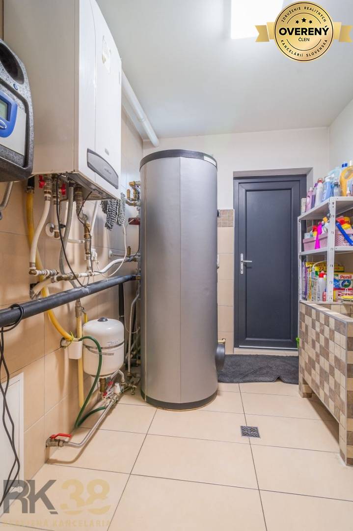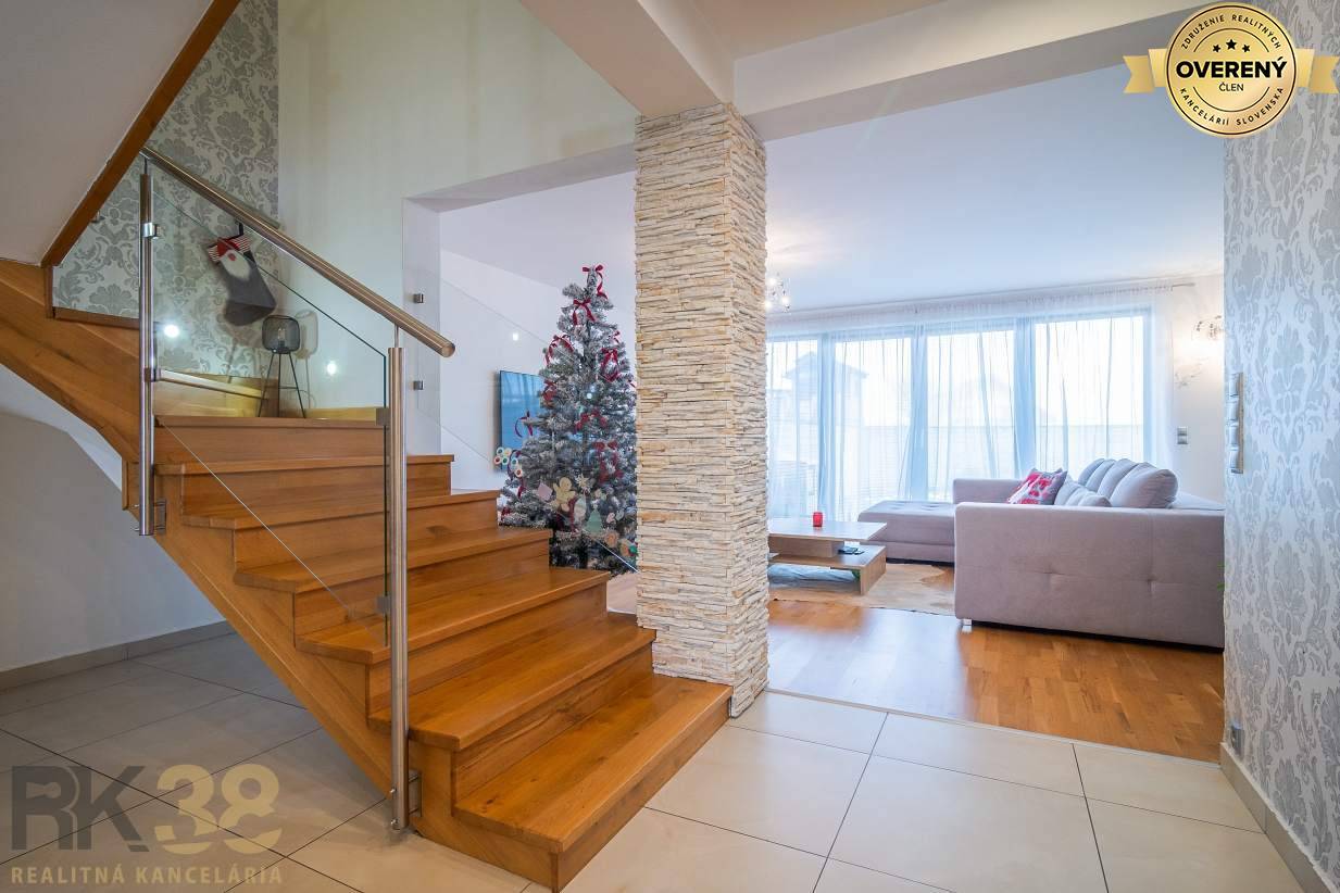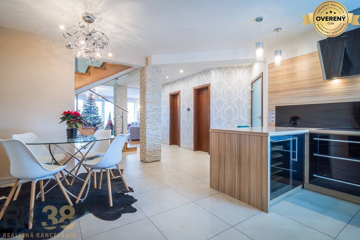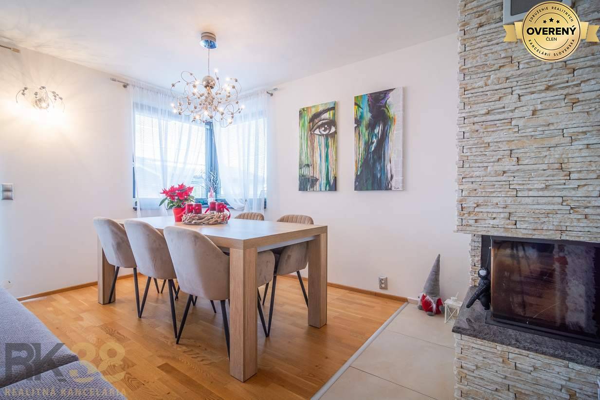 Všeobecné informáciePriestranný dom dispozične pozostáva z obývačky s krbom čiastočne prepojenej s kuchyňou a jedálenským kútom, pričom jedálenský stôl je situovaný aj priamo v obývačke. Na prízemí sa nachádza ešte kúpeľňa + wc a práčovňa s kotolňou. Dom disponuje aj garážou, čo je veľkou výhodou.