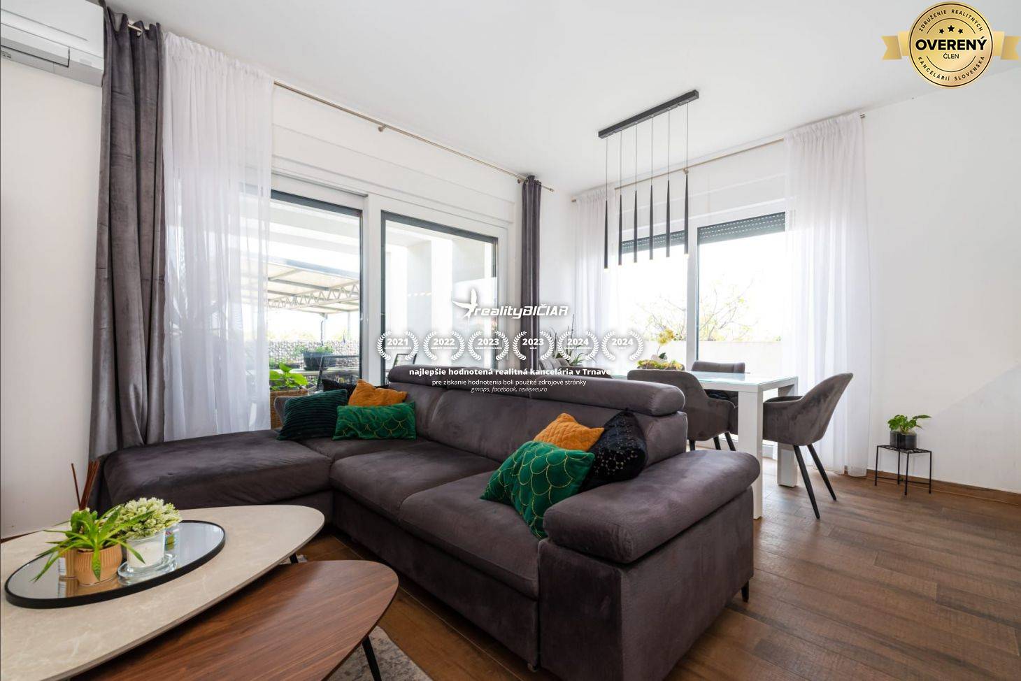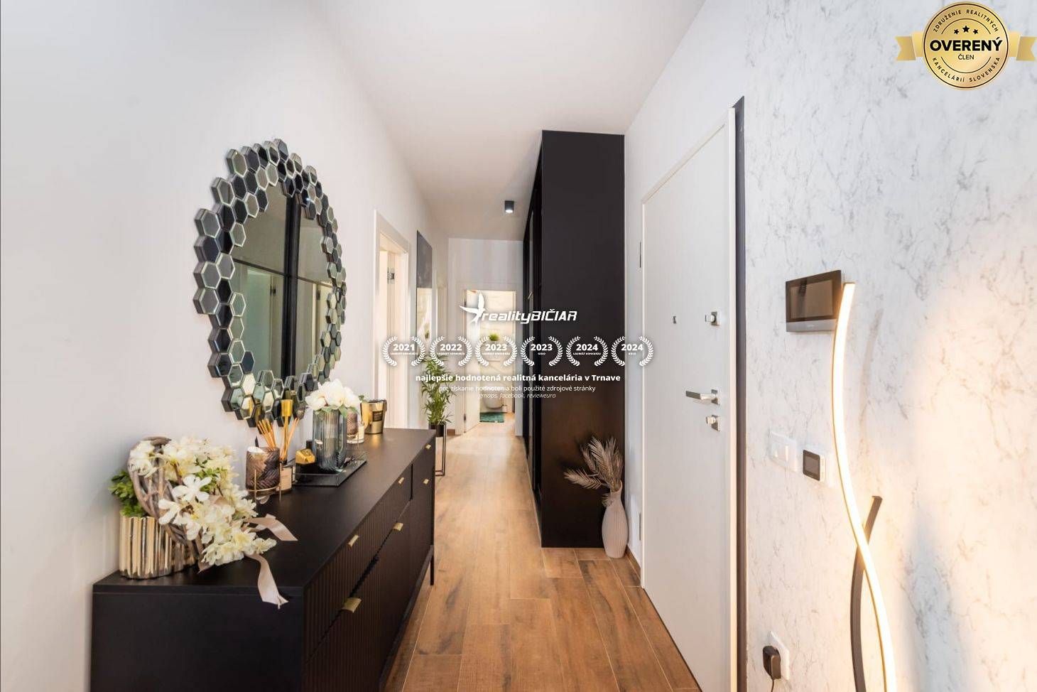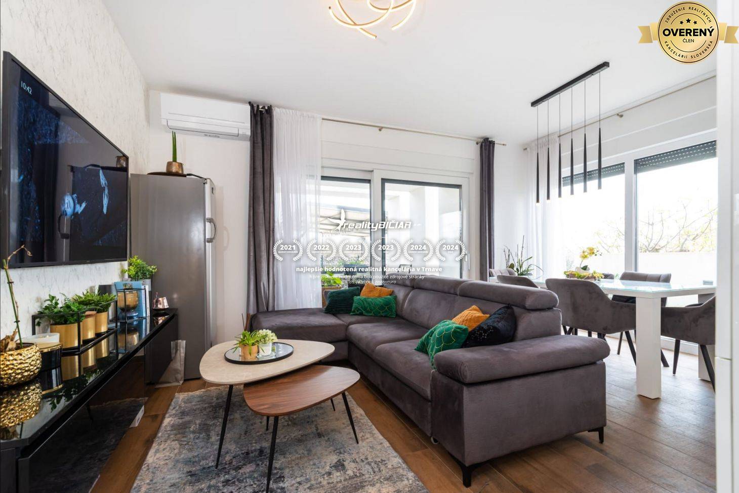 Byt je postavený s kvalitnými PVC trojsklami, vstavanými sieťkami proti hmyzu a roletami, v celom byte je nainštalované podlahové kúrenie, klimatizačné jednotky sú v každej izbe, vybavený alarmom a kamerovým systémom.