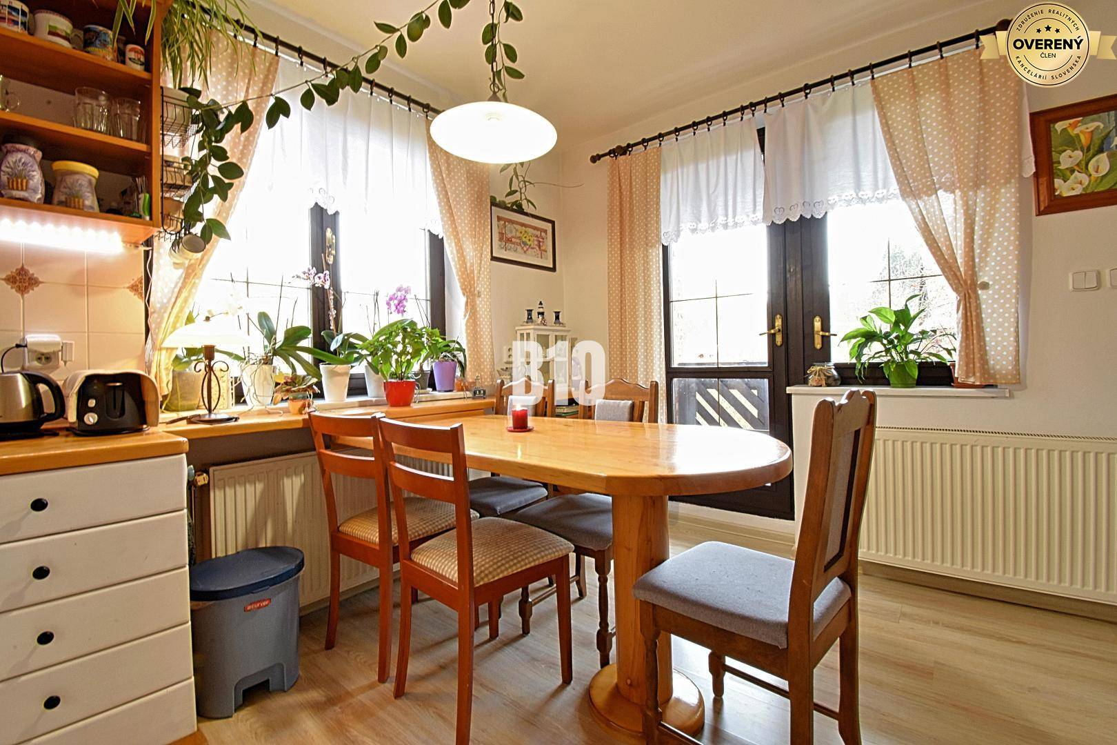 B10 Vám ponúka exkluzívne na predaj zaujímavý rodinný dom v Lietave. Rodinný dom v zaujímavom štýle je trojpodlažný so zimnou záhradou a má úžitkovú plochu cca 200m2. Súčasťou nehnuteľnosti je bohaté príslušenstvo a to je ďalšia veľkorysá priestranná nehnuteľnosť – pôvodná zrekonštruovaná stodola so sedlovou strechou, ktorá sa aktuálne využíva ako oddychová zóna, so záhradným sedením a vybavením na varenie a grilovanie v jednej časti a v druhej časti je zriadená garáž pre automobil. Na pozemku sa nachádza ďalšia garáž a jedno vonkajšie parkovacie miesto pre ďalší automobil. Ďalšou zaujímavou súčasťou príslušenstva je podzemná vínna pivnica so stálou teplotou. Pozemok na ktorom sa nehnuteľnosť nachádza je komplet oplotený a má výmeru 668m2. Celkový kolorit pozemku dotvára bohatá výsadba okrasných drevín, zimná záhrada a pekný trávnik. Večer je záhrada podsvietená čo umocňuje celkový dojem. Dispozične riešenie domu:Prízemie domu tvorí zádverie, obývacia izba s krbom, chodba, toaleta s umývadlom a kuchyňa s jedálenským kútom s výstupom na balkón. Prízemie je prepojené dreveným schodiskom s poschodím, kde sa nachádza chodba, detská izba s výstupom na balkón, kúpeľňa s vaňou, umývadlom a toaletou a spálňa tiež s výstupom na balkón. Z prízemia je tiež zriadený vstup pomocou dreveného schodiska do suterénu domu, kde sa nachádza priestranná miestnosť využívaná ako sklad, ďalej technická miestnosť, kúpeľňa s umývadlom, toaletou a sprchovým kútom, ďalšia obytná miestnosť s prepojením na zimnú záhradu s výstupom do exteriéru. Ďalej sa tu nachádzajú dve príručné menšie miestnosti slúžiace na uskladnenie záhradnej techniky a rôzneho náradia so vstupmi z exteriéru domu. Dom so stodolou je prepojený vydláždeným kamenným chodníkom. Popis domu:Dom sa nachádza v k.ú. obce Lietava na priestrannom slnečnom pozemku s peknými výhľadmi na okolitú scenériu. Je zateplený v kombinácii s obkladom v dekore pálenej tehly. Okná a dvere sú plastové vyhotovené na mieru. Dom je napojený na všetky IS vrátane plynu. Je vykurovaný pomocou plynového kotla prízemie a poschodie pomocou radiátorov, suterén podlahovým kúrením. Ako dodatkový zdroj tepla slúži krb. Krytina domu je pálená škridla. V dome je zriadený optický internet. Obec disponuje kompletnou občianskou vybavenosťou. Rodinný domV prípade záujmu o obhliadku alebo bližšie informácie ma neváhajte kontaktovať na tel.č. ID: 137685Cena: 349 000€ Aj váš dom, byt alebo pozemok predáme na počkanie #pocelomslovensku
