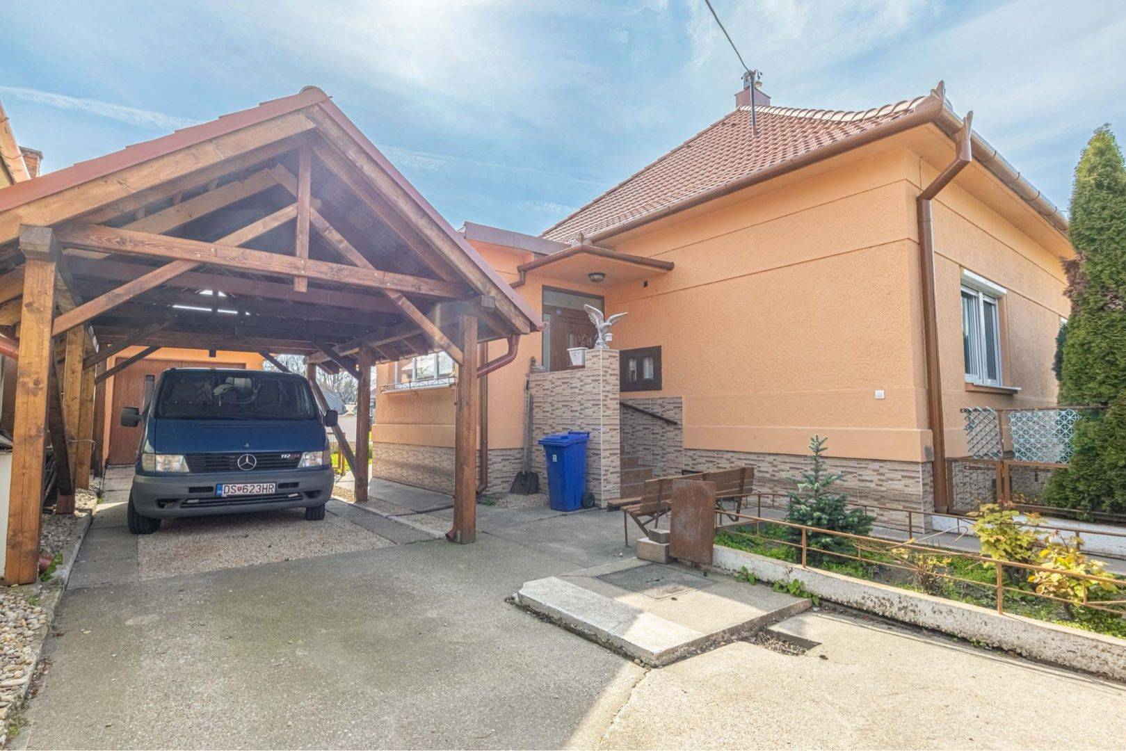 Rodinný dom má celkovú úžitkovú plochu 120 m2, garáž má výmeru 20 m2. Nehnuteľnosť sa nachádza na dostatočne veľkom a krásne upravenom pozemku o výmere 837 m2.